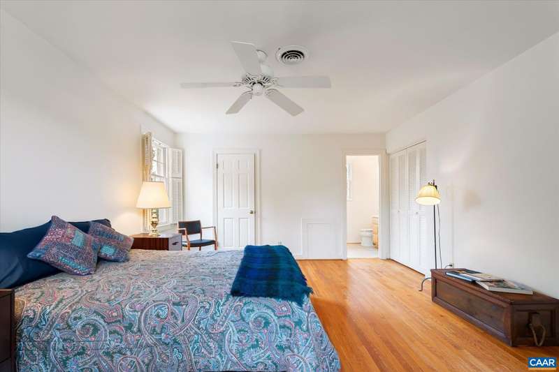 This perfectly situated house in a highly desirable neighborhood, is packed with potential! This unique lot offers extensive home expansion possibilities, and open space for modern living. Backs up to the Birdwood Golf Course, at the end of 3 attached homes adjoining open space. Great location, just steps from Boar's Head Inn and Sports Club. This home has original hardwood floors, 2 spacious bedrooms with en-suites and an ample living room with fireplace. There is a one car garage and 2 parking spaces in driveway in front. Retire to Jefferson country in style, supported by sports and dining facilities available. Conveniently located to UVA, Barracks Rd, Downtown and the best of Charlottesville. Home sold "As-Is".