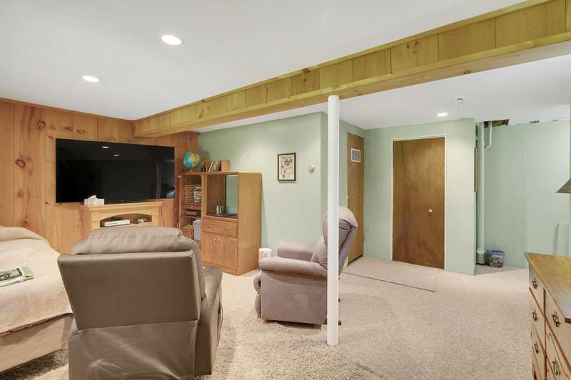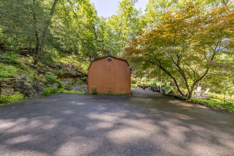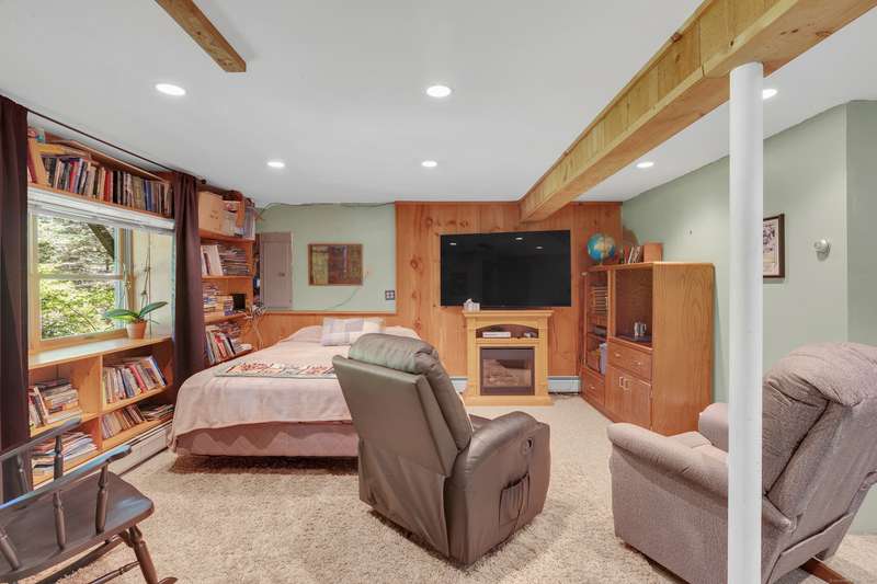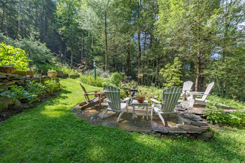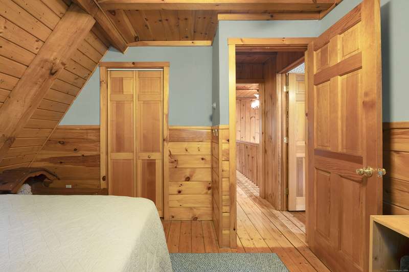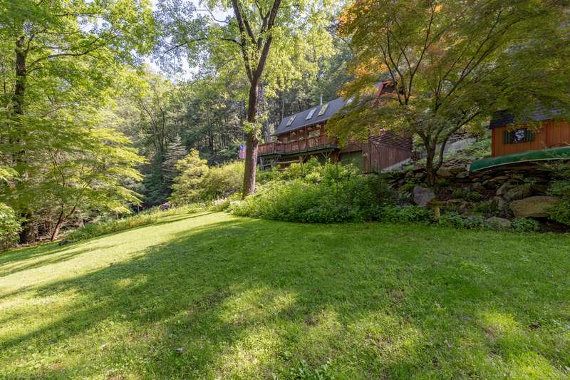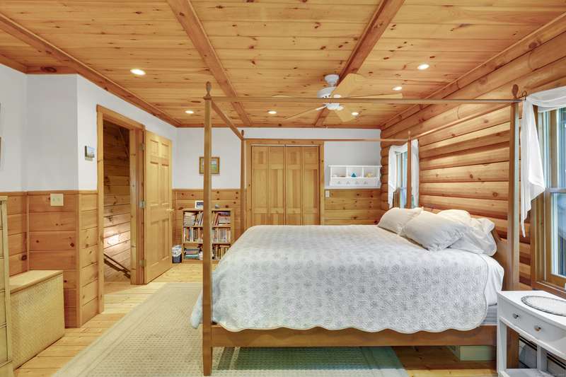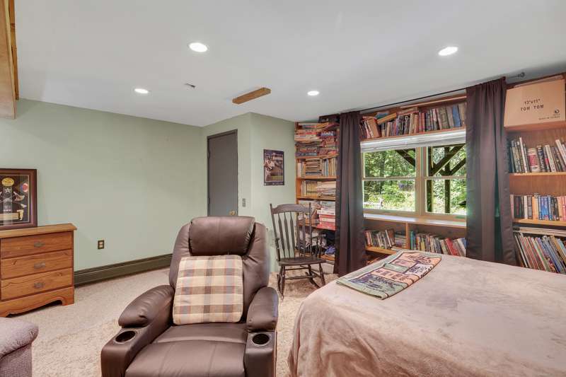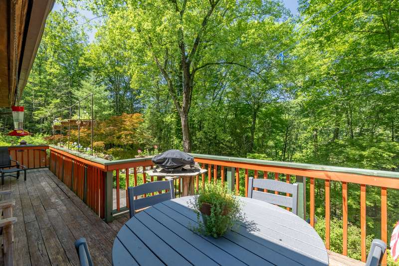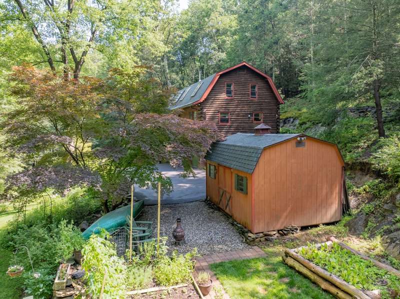 Nestled on 5.04 acres of serene, park-like grounds, this charming log cabin offers a perfect blend of seclusion, natural beauty, and year-round comfort. Surrounded by lush landscaping, mature trees, and open space, it's a peaceful escape from the everyday. Enjoy tranquil afternoons by the serene manmade pond, or spend your evenings unwinding beneath a sky full of stars. Inside, the home radiates warmth and charm. Step into the expanded foyer with soaring cathedral ceilings that lead to a captivating family room, filled with natural light and character. that leads to a large deck. The charming kitchen boasts elegant quartz countertops and a dedicated dining area-perfect for hosting gatherings with family or friends. Newly refinished hardwood floors flow throughout the main level and upper hallway.Upstairs, the primary bedroom is joined by two additional bedrooms, providing ample space for guests. The walk-out lower level offers even more living space-ideal for a game room, home office,