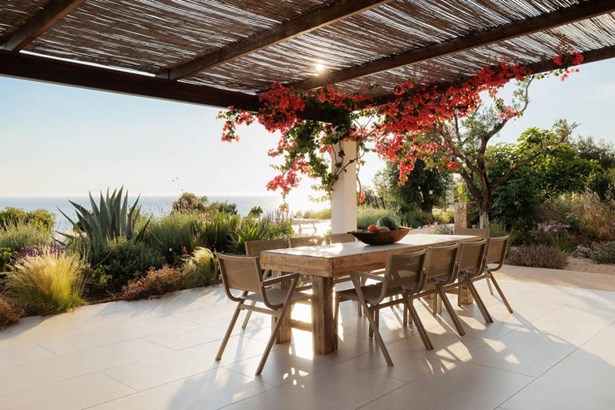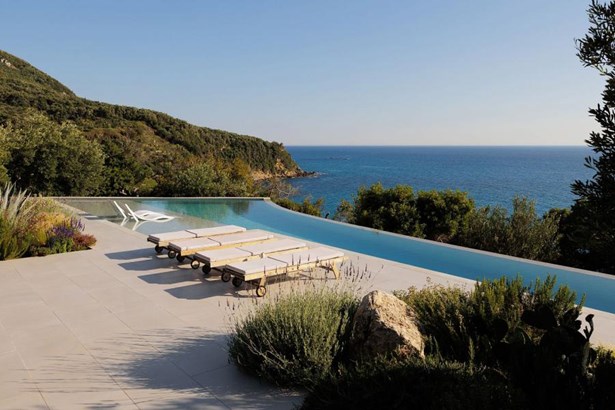 The outdoor spaces are thoughtfully designed for total relaxation, featuring a 30-meter swimming pool, sun-drenched terraces, and shaded spots surrounded by mature olive trees and vibrant floral gardens. It’s the ideal setting for both quiet retreats and elegant entertaining.