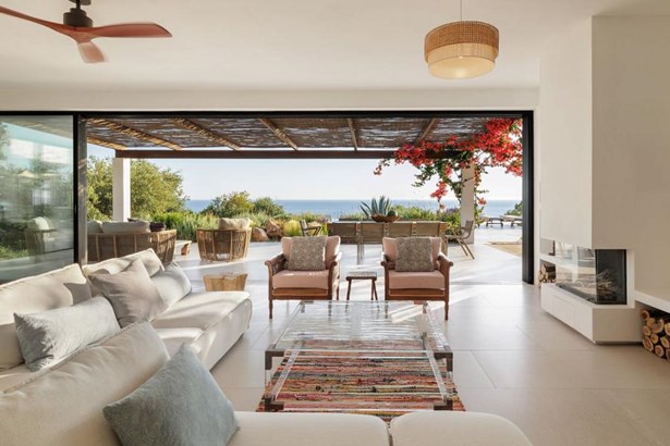 Modern architectural design seamlessly integrates with the breathtaking coastal landscape, creating a home that is as striking as it is serene. Upon entry, the villa impresses with its open-plan layout, abundant natural light, and expansive windows that frame stunning sea views from every room. The spacious living area flows effortlessly onto a generous terrace, perfect for soaking in the panoramic vistas and the gentle sea breeze.
