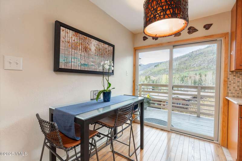 This light-filled end unit is tucked into the peaceful Wren House complex and offers stunning mountain views from a generous wraparound deck, perfect for relaxing or entertaining a crowd. Due to its location, the deck enjoys rare privacy with no neighboring decks in sight. Inside, the property is meticulously maintained and comes fully furnished, so it is move in ready. Notable features include heated floors in the kitchen and upstairs bathroom, a pantry cabinet with pullouts, a custom closet, water filtration system for the entire condo, and multiple parking spaces. The unit sits in a very quiet location, well away from the noise of I-70, adding to the serene mountain-living experience. Conveniently located near the Town of Vail bus stop and complete with a large storage unit below. An added bonus is, short-term rentals are allowed, making this a fantastic investment opportunity or ideal mountain getaway! Loft serves as the second bedroom with a queen sleeper sofa.