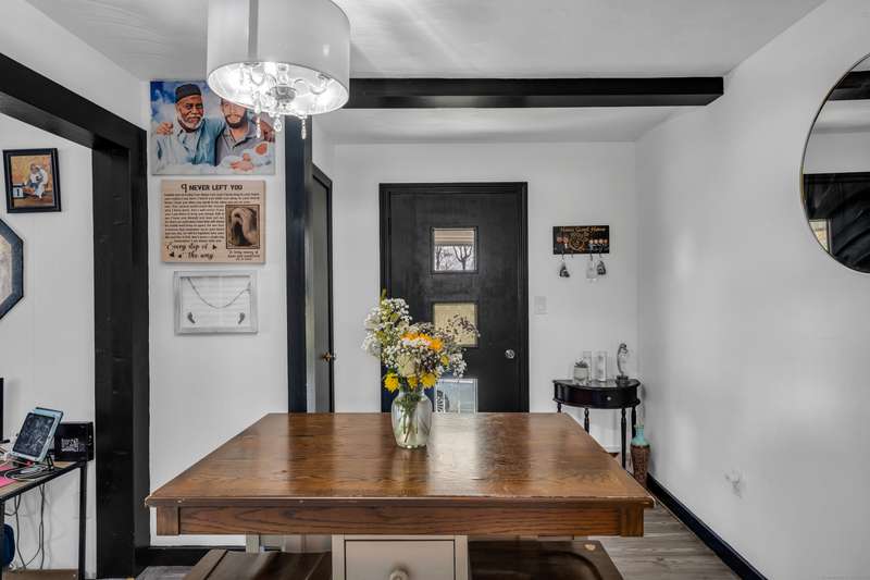 Welcome to this 3-bedroom, 1-bath ranch home! Step inside to discover a spacious sunken living room perfect for relaxing or entertaining. The oversized bathroom offers plenty of space and comfort, a rare feature in a single-bath home. The partially finished basement provides extra room for a home office, gym, or playroom-tailored to your needs. Enjoy outdoor living with a covered patio overlooking a large, flat backyard-ideal for gatherings, gardening, or simply soaking up the sun. Don't miss the opportunity to make this well-kept home your own! Dining room/foyer has hardwood underneath.