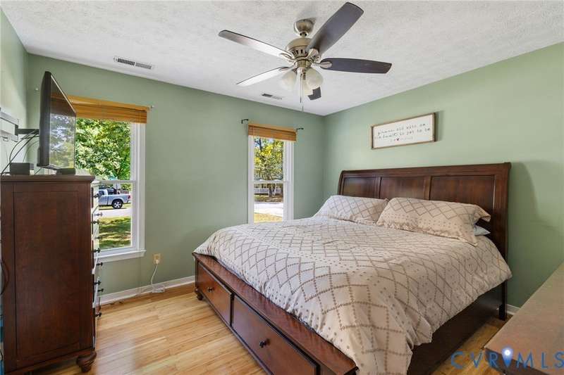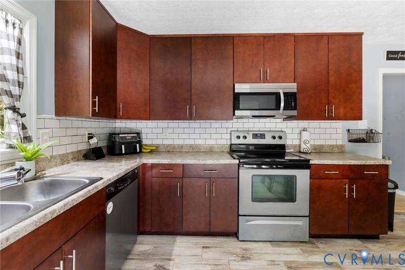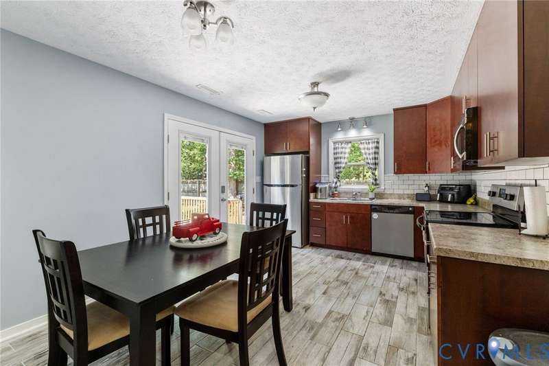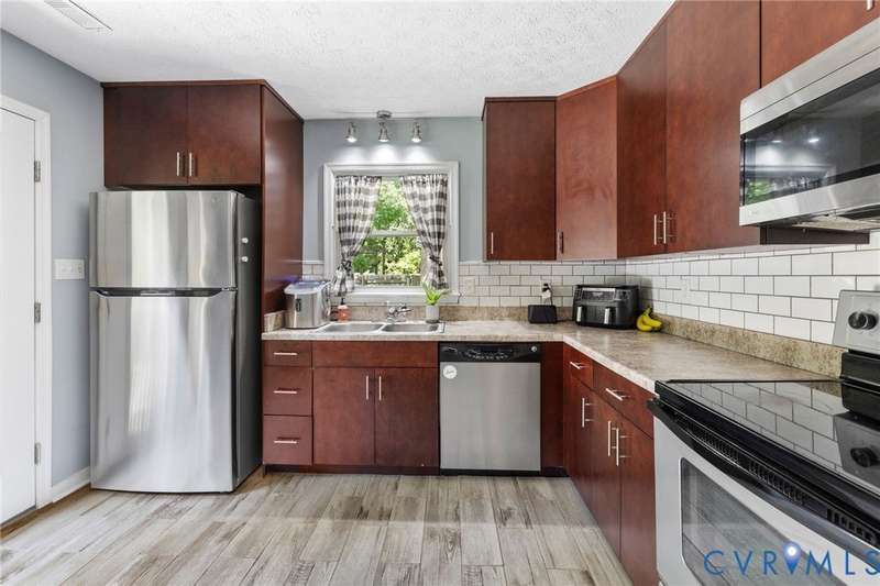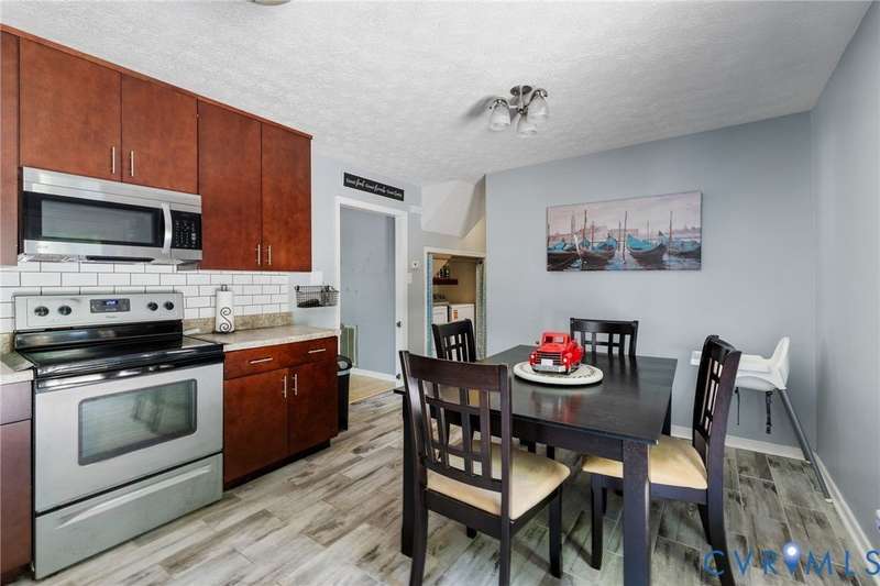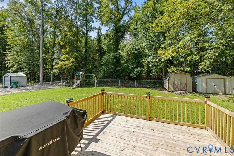 Welcome to this charming two-story home tucked away on a private cul-de-sac lot! Offering 4 bedrooms, 2 full baths, and 1,296 sq. ft., this home blends comfort and convenience with stylish updates throughout. Step inside to a spacious family room featuring bamboo floors and abundant natural light. The bright kitchen boasts stainless steel appliances, subway tile backsplash, and a cozy dining area with access to the rear deck, perfect for indoor-to-outdoor entertaining. The first floor also includes a convenient laundry room, full bath with tub/shower combo, plus the primary bedroom and an additional bedroom for flexible living. Upstairs, find two more bedrooms with plush carpeting, oversized closets, and a full bath with an oversized vanity and tile flooring. A pull-down attic provides even more storage. Outside is an outdoor retreat, complete with a privacy fence, detached storage sheds, sprawling backyard, and a large deck ideal for relaxing or hosting gatherings. This home is a must-see for buyers seeking a blend of comfort, style, and privacy in a desirable location!