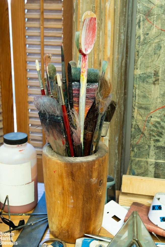 Previously owned and occupied by a world renowned abstract impressionist artist, the house is a living museum with many of the walls, doors and cabinetry covered and collaged with Japanese prints, calligraphy on rice paper, placards and other quirky drawings  and objects found in the shops and streets of Paris. A permanent part of the house, these thought provoking images provide a glimpse into the mind of an artistic genius and can either be preserved by the new owner, or donated to the artist's foundation. Beyond  its artistic provenance, this unique property is primed for restoration and offers an additional 4,222 square feet of FAR allowing one to expand for a total of 7,678 square feet!