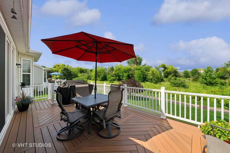 *HOUSE IS PENDING AND GOING TO CLOSING SOON!* This is the house you are waiting for in Edgewater by Del Webb! Ranch with finished basement! One of the BEST VIEWS in Edgewater. Home built in 2012 and has hardwood floors on first floor except newer carpet in bedrooms and den. Fireplace in Great Room. Many upgrades: Newer roof 7/20;Newer furnace 12/18; HWH 6/25; Newer composite deck 9/20; newer carpet 8/24 on 1st flr;Add'l. kitchen roll-out shelves 7/20; den doors 9/20; kitchen backsplash 10/21; laundry rm. cab. & sink 2/21; Irrigation system added 10/17;newer washer/dryer 2/21;12v battery backup 8/21. Finished basement has LOOK OUT WINDOWS, a 10'x9' dinette area, a nice unfinished area for storage and workbench is staying in 18x17 work area. Walking path behind house and yard is VERY PRIVATE! Nature abounds, one of a kind property! It has been lovingly cared for! Edgewater by Del Webb is a over 55 Active Adult community-one person in home needs to be at least 55. Creekside Lodge is heart of community with 2 pools (outside and inside with hot tub), fitness center, billiard room, library, and many activities to be involved in if you like! Edgewater takes care of snow on driveway and they shovel to door if 2 or more. They cut grass and fertilize and trim. Its a lovely place to live!