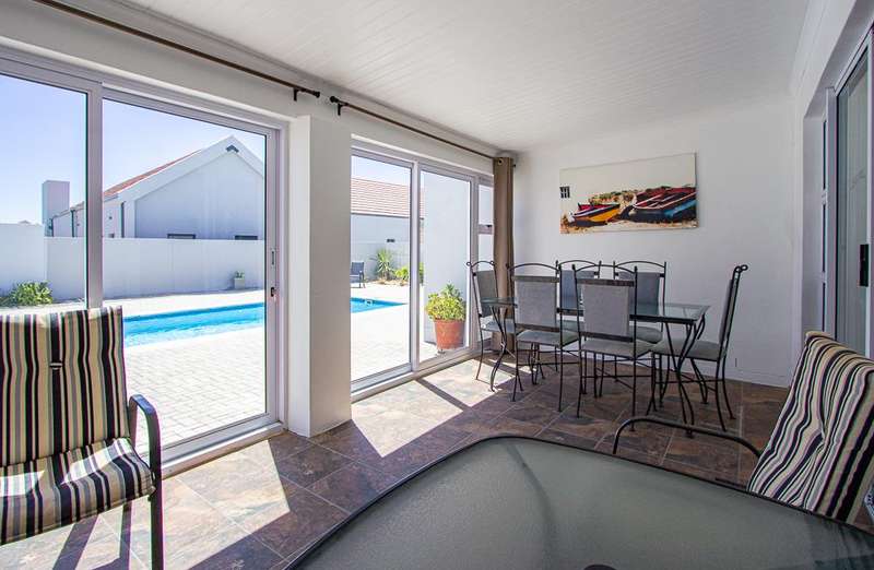 One level house on the very sought-after location of Admiral Island. The spacious erf of 872sqm made it possible to build without a double level and still fits in 5 bedrooms plus a swimming pool. An added bonus is the 2-bedroom cottage with own entrance and own single garage which makes it perfect for communal family living or as a rental income. The main house has a lovely modern kitchen with separate scullery and a pantry. The double garage has a fitting for your washing machine and conveniently an exit door to the washing line. Al three bedroom can easily fit a double bed. The main bedroom has an ensuite shower bathroom while the other 2 bedrooms share a full bathroom. The braai room opens up to the paved backyard and swimming pool. The house is fitted with a Solar system and inverter to ensure your independence. Ceiling fan in living area and all rooms of the cottage. Fire place in living area Fibre internet Double and single garage plus extra parking space. Cottage is separate and fully walled. Admiral Island offers secure living in a luxury environment. Contact me today to make a viewing appointment.
