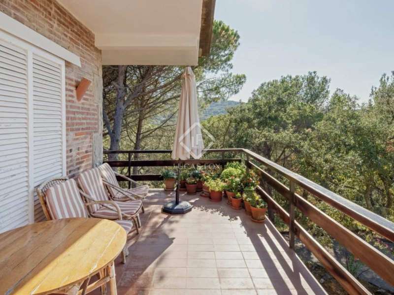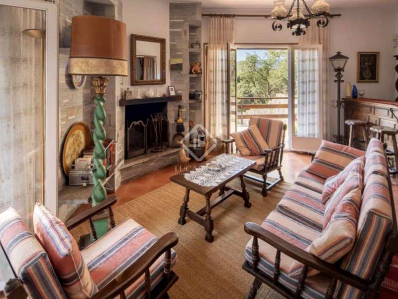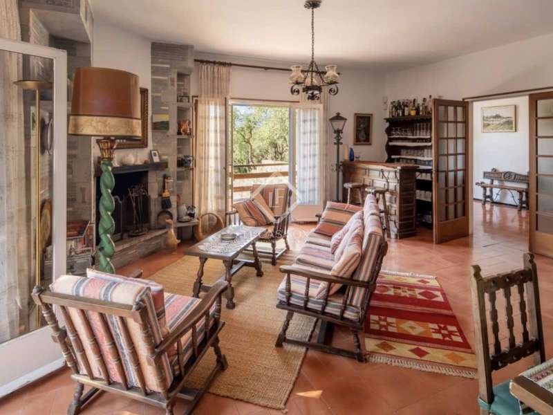 Lucas Fox presents Villa Montroc, an elegant rustic-style family-friendly villa with a natural stone façade, a large swimming pool and extensive gardens located in Castell-Platja d'Aro, Costa Brava. It is located a short distance from Sant Feliu and two kilometres from the magnificent beaches of Sant Pol and Sa Conca. The property is located on a small hill with a plot of 12,000 m², surrounded by pine and oak trees from the surrounding mature forests, which provide a truly charming atmosphere. The villa is located just 2 km from the beach, as well as shopping centres and vibrant nightlife and cultural options.mSurrounded by flourishing gardens and pine forests, this is the ideal place for your family to thrive and enjoy an unforgettable holiday. The estate was designed and built by a landscape artist who was looking for a summer holiday home in the unspoilt hills of Vilar d'Aro in 1974. To do so, he used natural materials and provided all the usual amenities. Now we find a five-bedroom family-friendly villa, with extensive gardens, a 16 x 8 metre swimming pool with a teak diving board and surrounded by a solarium. Next to the pool there is a large green area, ideal for practising any kind of sport, and a children's area with swings. The property has a total built surface area of 1,245 m², which includes terraces, sports area and parking, along with the ramp; the house has 211 m² built distributed over 2 floors plus 114 m² for the closed garage and machine area. The main floor of the house features a large living-dining room with a fireplace and access to the terrace, the renovated kitchen, four double bedrooms, a full bathroom and a guest toilet. On the upper floor, there is the main bedroom with its private bathroom. On the lower ground floor, we have a wine cellar and a garage for one car. The paved area in front of the garage has capacity for parking up to six vehicles. The house has oil-fired central heating with radiators, air conditioning, running water, mains electricity, high-speed fibre optic Internet access (1 Gbps) and satellite television. Please contact us for more information about this unique property.