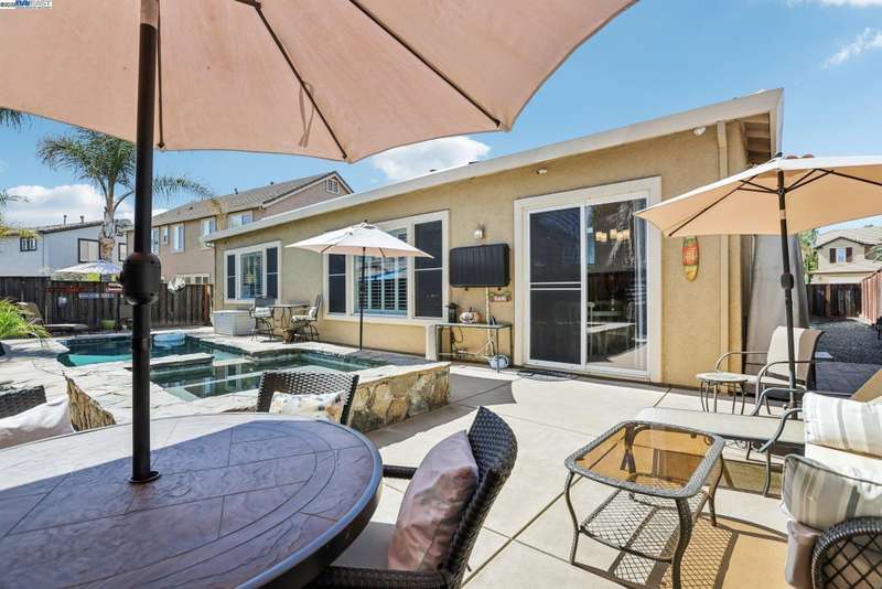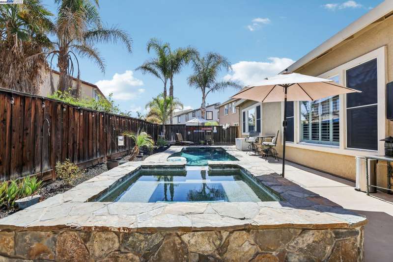 Stunning 4-Bedroom Home with Pool, Spa & Office/Den Option! Welcome to your dream home! This beautifully upgraded 4-bedroom residence also offers a flexible 4th bedroom, den, or ideal home office — perfect for today’s lifestyle. Step through the grand double-door entry into an open and inviting floor plan featuring designer flooring, plush Berber carpet in the bedrooms, and upgraded light fixtures and plantation shutters throughout. You’ll fall in love with the spacious gourmet kitchen, complete with gorgeous granite countertops, rich cabinetry, stainless steel gas cooktop & double oven, and an eat-in area Seamless flow into the extra-large family room with a gas fireplace. Also offering a formal living and dining area, perfect for entertaining guests or holiday gatherings. The luxurious main suite is truly a retreat, boasting crown molding, a spa-like bathroom with an oversized shower, deep soaking tub, dual vanities and a spacious dressing area Step outside to your private backyard oasis, complete with a Pebble Tec pool and a relaxing Jacuzzi spa. Ideal for entertaining or unwinding after a long day. Side yard access—perfect for storing a small trailer, toys, or extra convenience plus owned solar This home truly has it all - space, style, and smart living. It’s a must-see!