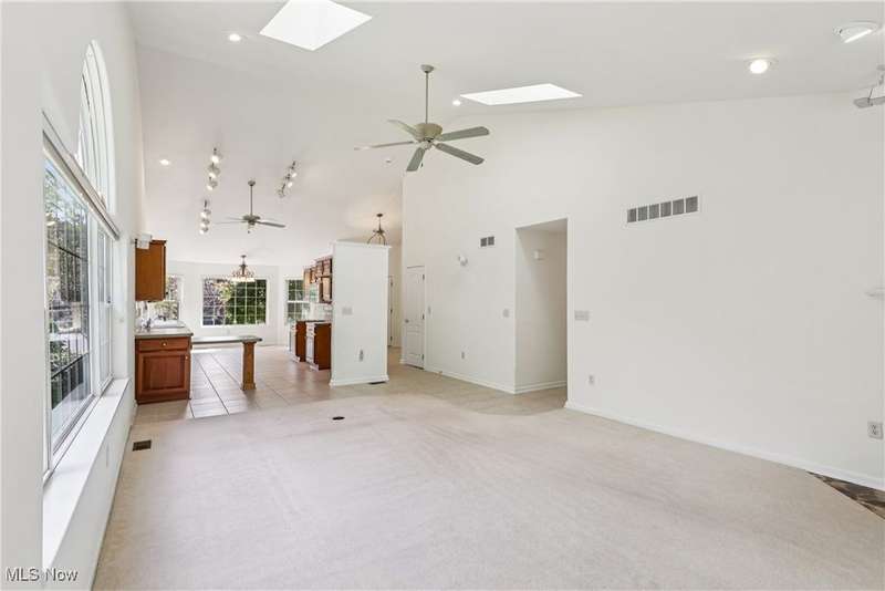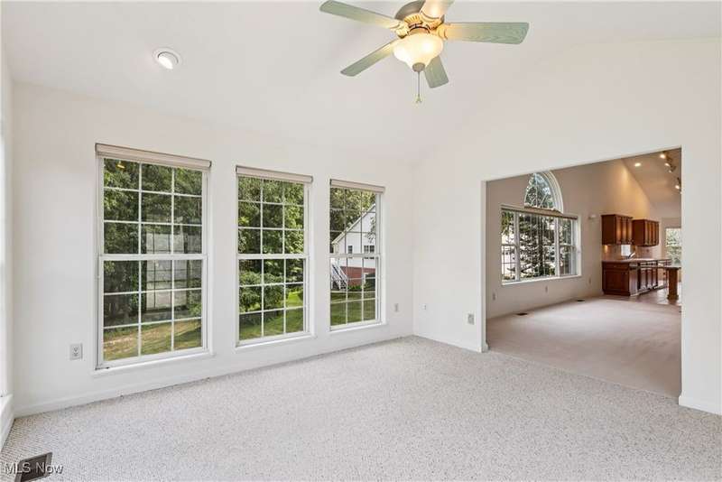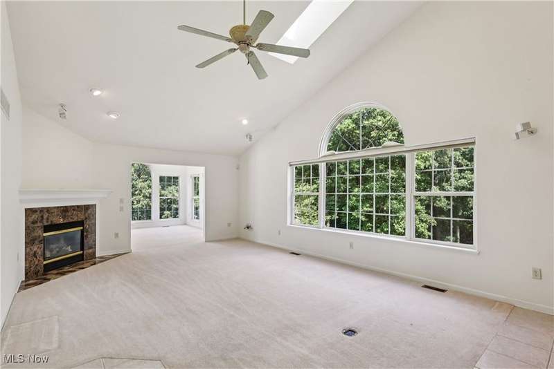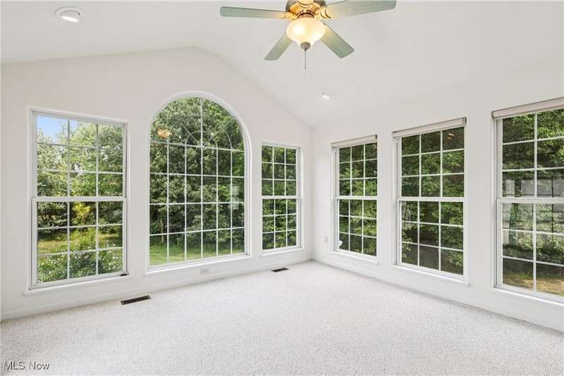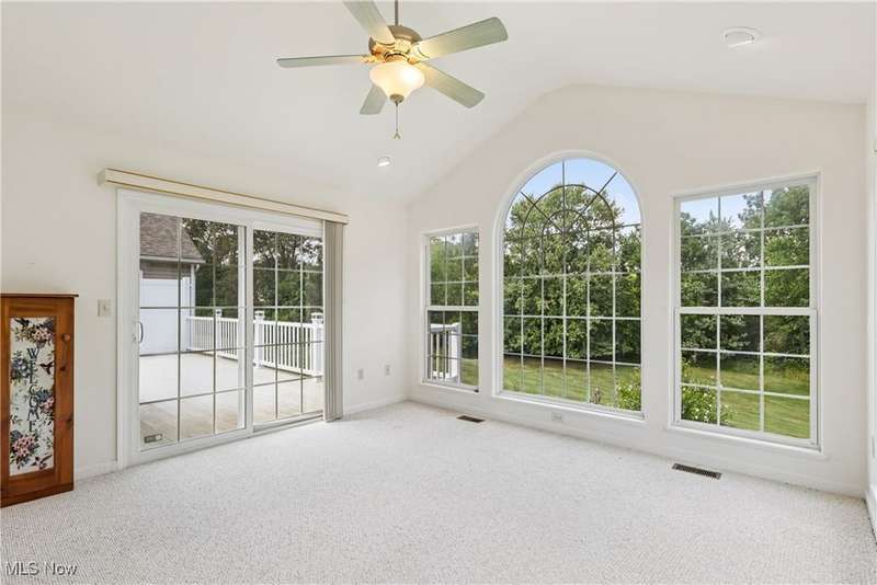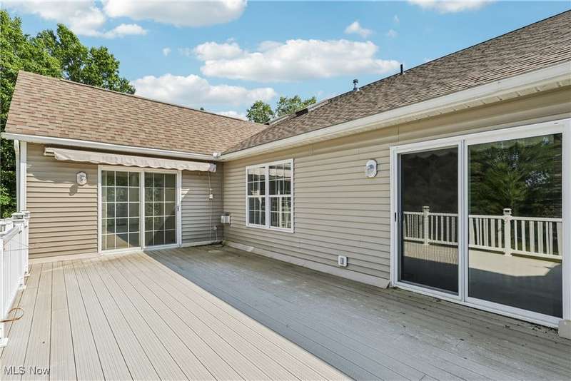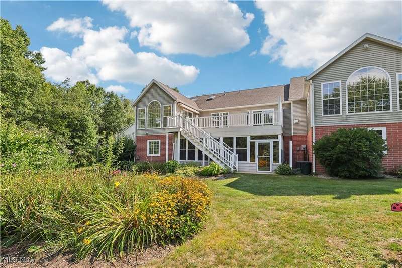 Quality built home with many features on desirable Pickle Road corridor in Green school district. Enjoy the peaceful rare corner unit in Camden Ridge set on a culdesac in back of development overlooking wooded setting, lovely peaceful setting perfect for relaxing or play. Enter from the covered entry into an inviting foyer and open floor plan including spacious kitchen offering loads of Merillat cabinets, counter space, peninsula and sunny front dining space. Open to vaulted great room with skylights & mantled gas fireplace then on to the 4-season room overlooking that gorgeous bucolic wooded view and slider to large back deck with stairs to yard w retractable awning. The entire home is so well integrated and has good sight lines. Continue into the bedroom suite with Owner's en-suite bath, space saving pocket doors, roomy bath with shower and separate soaking tub, and walk in closet, also has access to deck for relaxing mornings or evenings listening to the crickets and watching deer. First floor laundry (sink & cabinets) and attached garage entrance gather at stairs to fully finished walk-out lower level with so much more for you - generously spacious rec room, office, en suite bedroom, and workshop/storage/utility room... all with great natural light, then ending with the walk-out slider to 3season room under the deck with nature-stone floor & surround of windows. Attached 2 car garage features stairs to storage, drain & cold water, cabinets, ramp (removed upon request). Comforts of wonderful natural light, central vac, Bose speakers wired, ceiling fans, high ceilings & quality blinds throughout. Simply a wonderful very spacious home that's ready for you. Planned Unit Development (PUD) in pleasant area so convenient to all amenities...CAK airport, commute any direction Akron/Canton and beyond, superb golf options, fantastic dining and retail on Arlington, Massillon, Belden, Hartville; Portage Lakes and more. Come fall in love with this wonderful home.