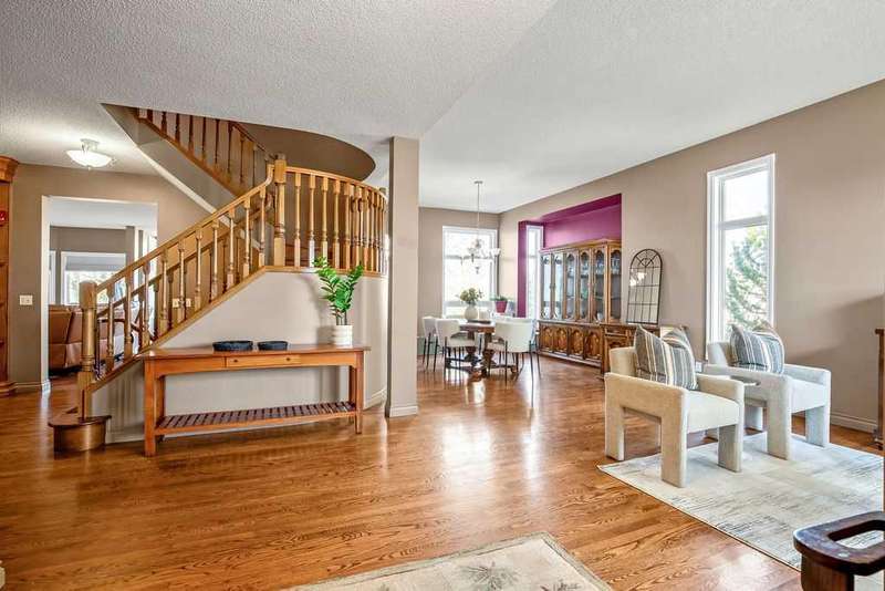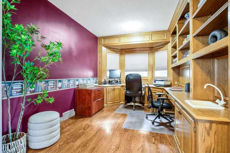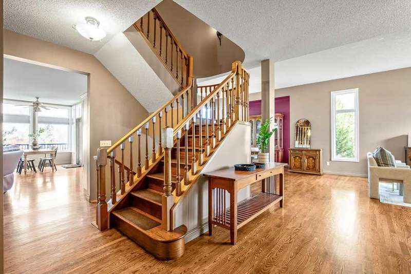 Pie Lot Alert! This lovely, updated 2-Storey Split home backs directly onto the golf course in Douglasdale. The main floor features hardwood floors, a large entryway, living room, dining room, large office with built-in cabinets, mud room/laundry room, and 180-degree views of the golf course from the family room with a brick-surrounded fireplace, and large kitchen with stainless steel appliances, a spacious breakfast nook, and granite countertops. The upper floor contains the 3 bedrooms and 2 full bathrooms, including the master bedroom with a 5-piece ensuite. The walk-out basement is perfect for entertaining with a large wet bar complete with a full-size fridge and dishwasher. A large recreation room with a fireplace and workout area flows nicely onto the stone patio and backyard. Rounding out the basement is a 4th bedroom, a 3-piece bathroom, and a flex room. Updates Include: 2 High-Efficiency Furnaces, A/C Unit, Triple-Pane Windows, Water Softener, and Shingles. Book a viewing today to view this exceptional home.