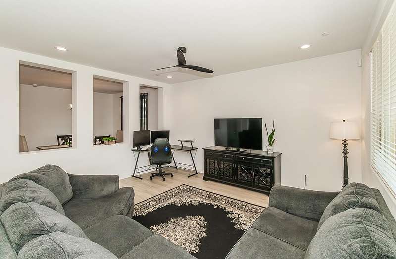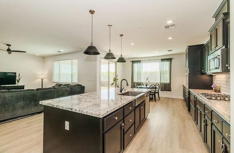 The Dinuba River Ridge Golf Course subdivision is the perfect setting for this welcoming 3-BR, 2-BA home. Beautiful plank flooring greets you as you enter. Ample formal dining with peekaboo openings to the spacious living area makes entertaining a plus. In this home you'll enjoy an oversized kitchen with island, granite countertops, stainless appliances, extended breakfast bar and ample cabinets extending clear into the dinette area for the storage you've always dreamed of. Sliding doors to roofline covered patio for pets or kids to play. Master bedroom has brand new carpet and screams luxury when you enter this amazing master bath. Gorgeous oversized walk-in shower with glass enclosure and an extended granite 2-sink vanity for him and her. Home has an additional two bedrooms with full bath, located perfectly for guests. Indoor laundry room is plumbed for sink. The joy of a spacious walk-in pantry is just a few more perks to owning this home. Affordable plus great location are a real bonus to owning this home!