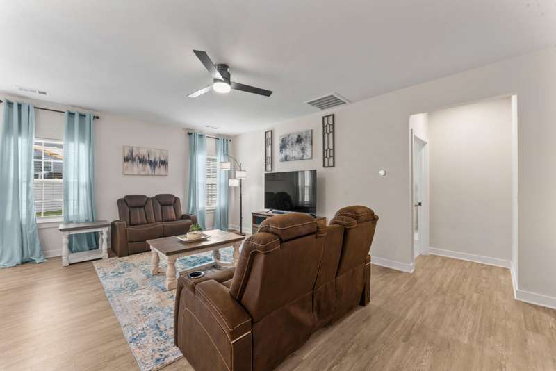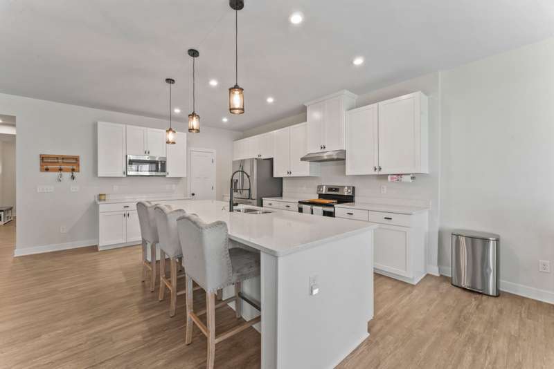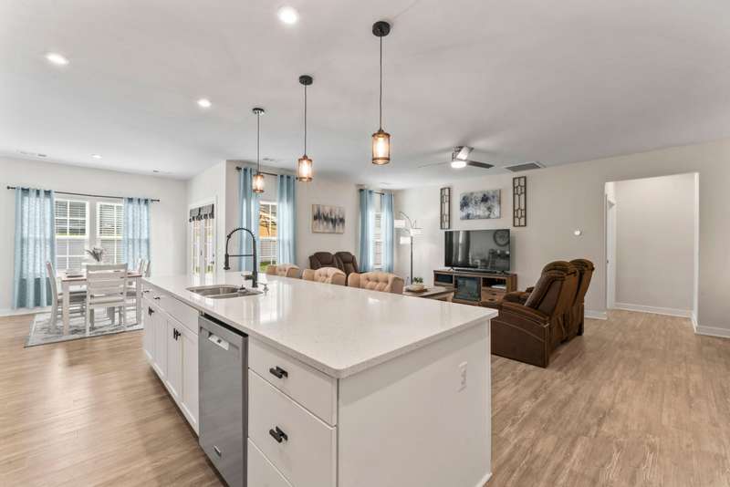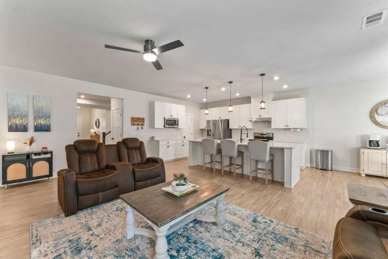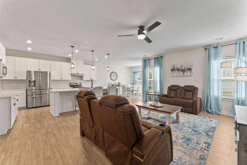 From the moment you arrive, the inviting covered porch sets the tone for what's inside--warmth, comfort, and thoughtful design. Step into an open floor plan that feels both spacious and functional, with a large living area seamlessly connected to the kitchen and dining space. The kitchen is a standout with sleek quartz counters, a generous island, and included appliances that make settling in simple.