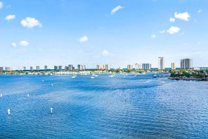 Pristine 9th floor 2BR+den/3BA overlooking the Intracoastal & ocean, available for annual or off season. Impact glass, semi-private elevator access. Open concept, split floor plan with Den can be used as 3rd BR. Main living areas w engineered wood floors! Spacious owners suite w/his & her walk-in closets. Primary bath w/double vanity, jetted bath & water closet. Stainless steel appliances in the open kitchen. Assigned garage parking & climate-controlled storage unit. 24/7 manned gate, valet, NEW tennis, NEW pickleball and bocce, walking path w/gazebo, Newly renovated rooftop oasis w/pool, spa, BBQ areas, clubhouse, billiard room & fitness center. Marina w/dry docks available. Pet Friendly Community. Ready for you to enjoy and watch the sunrise every morning - Immaculate Condo