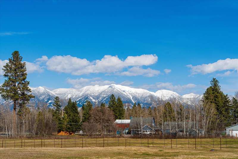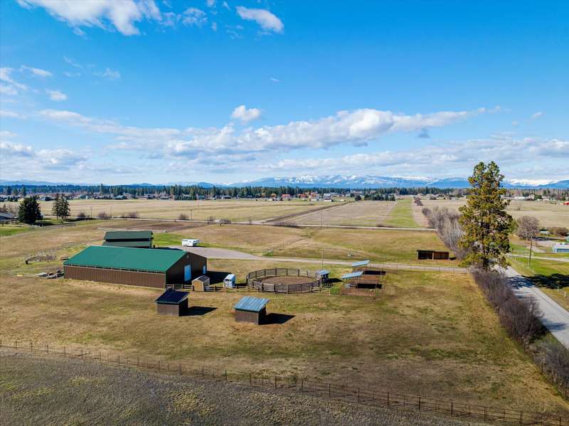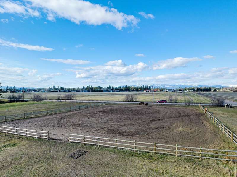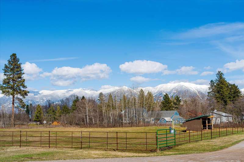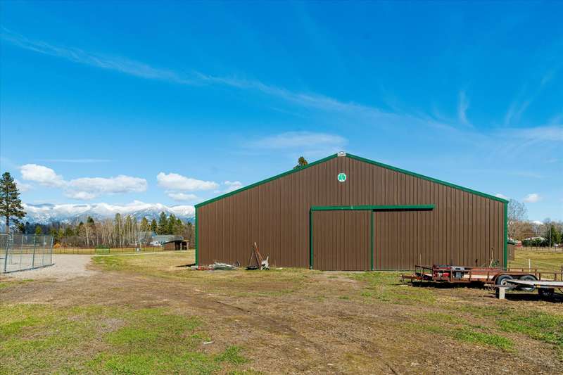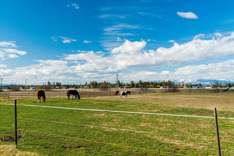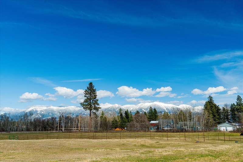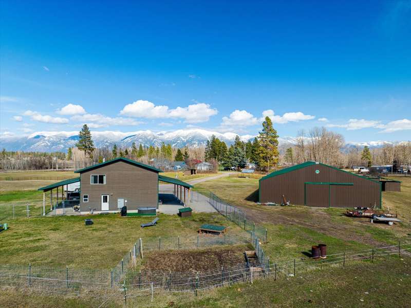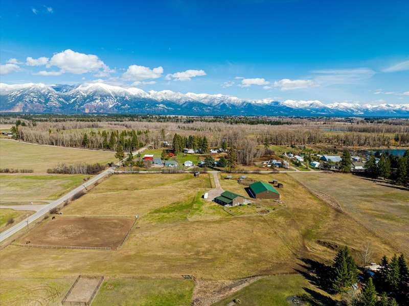 Horse lover's dream on 9.8 acres in East Kalispell! Fully set up for horses with welded metal perimeter fencing, cross-fencing for paddocks and grazing, multiple horse shelters, a round pen, and a fully enclosed 60'x96' sand-floor riding arena. A 32'x44' heated shop with 16' walls and a 14' roll-up door with overhangs on both sides for open storage. The shop also includes a finished apartment with 2 beds, 1 bath, kitchen, office, and spacious upstairs living area. In-floor heat powered by natural gas. 4-bedroom septic, private well, watering stations, and breathtaking mountain and meadow views. Peaceful country setting just minutes from town. Live in the apartment while building your dream home, multiple great building sites. No covenants, bring your animals!