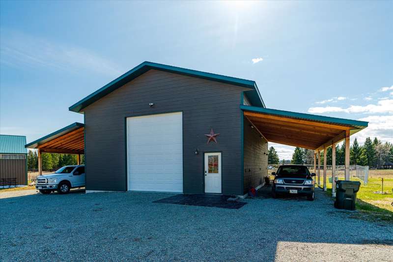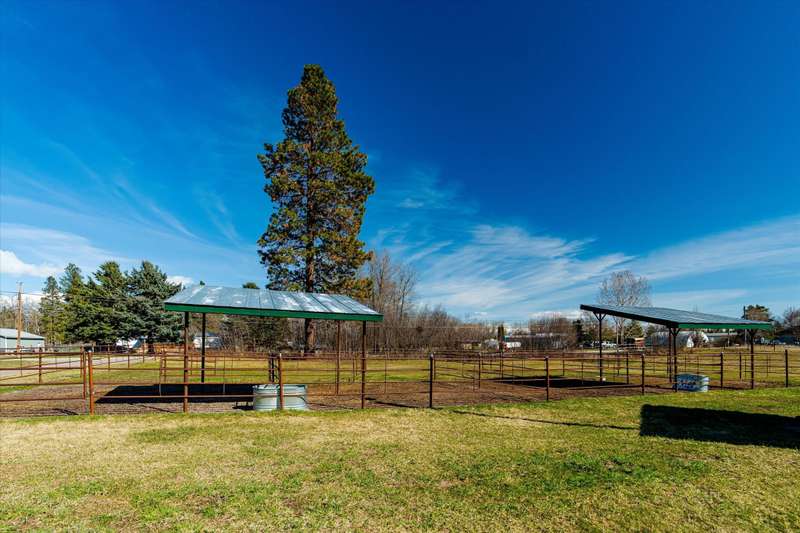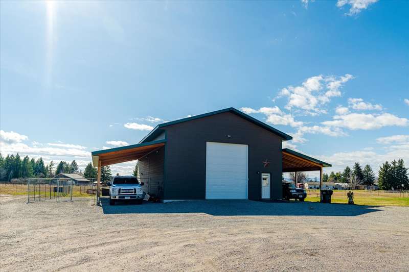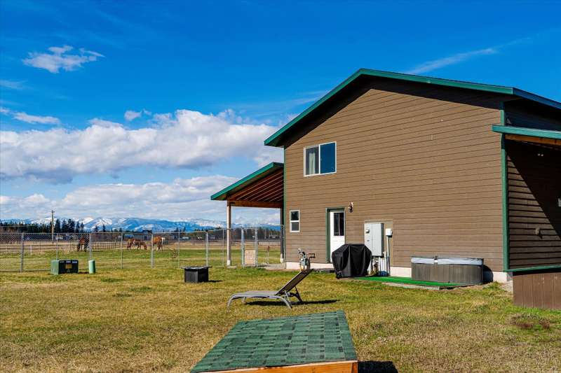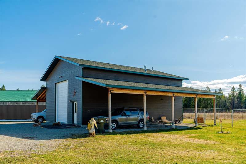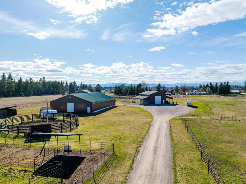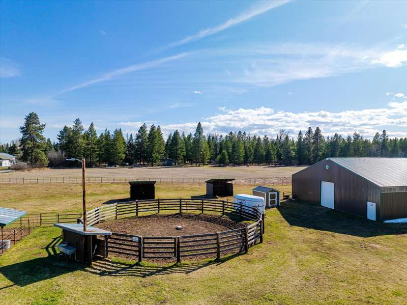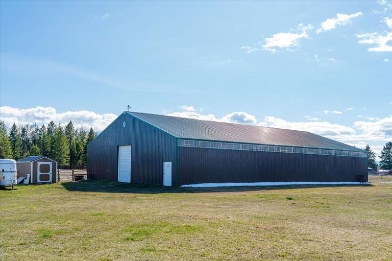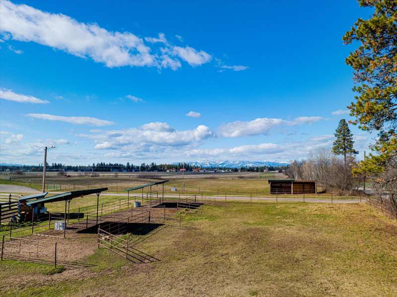Horse lover's dream on 9.8 acres in East Kalispell! Fully set up for horses with welded metal perimeter fencing, cross-fencing for paddocks and grazing, multiple horse shelters, a round pen, and a fully enclosed 60'x96' sand-floor riding arena. A 32'x44' heated shop with 16' walls and a 14' roll-up door with overhangs on both sides for open storage. The shop also includes a finished apartment with 2 beds, 1 bath, kitchen, office, and spacious upstairs living area. In-floor heat powered by natural gas. 4-bedroom septic, private well, watering stations, and breathtaking mountain and meadow views. Peaceful country setting just minutes from town. Live in the apartment while building your dream home, multiple great building sites. No covenants, bring your animals!