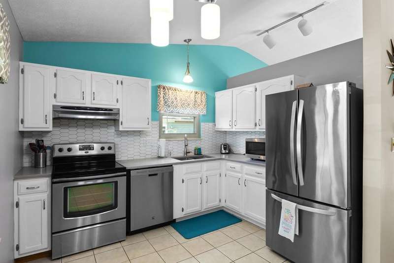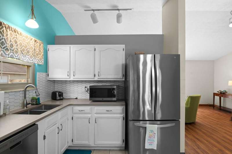 Tucked into a quiet neighborhood, this move-in-ready 4 level split offers modern finishes, flexible living areas, and thoughtful upgrades including new LVT flooring and carpet throughout. Spacious vaulted ceiling great room leads to fenced yard with deck, brick patio and storage shed. Open concept kitchen has quartz countertops and stainless-steel appliances. Second floor with 3 bedrooms and full bath (updated). Lower-level family room has wood burning fireplace and half bath (updated). Homegard home warranty is in place and will transfer to buyers.