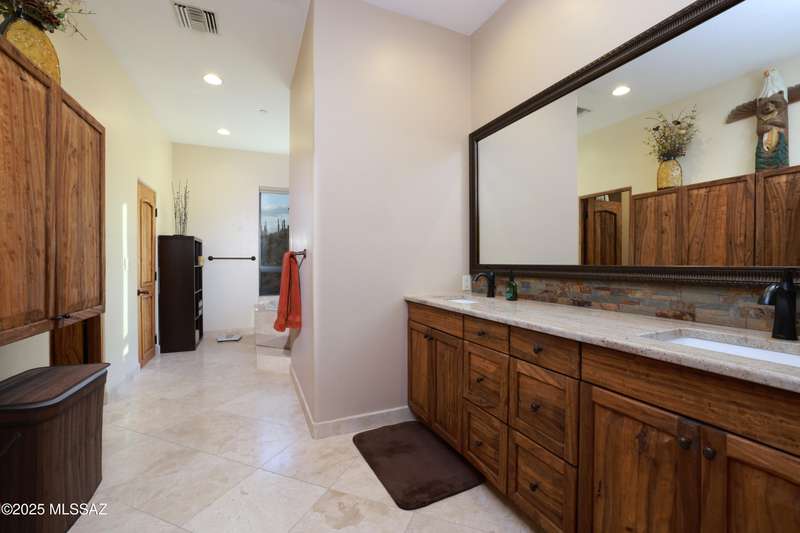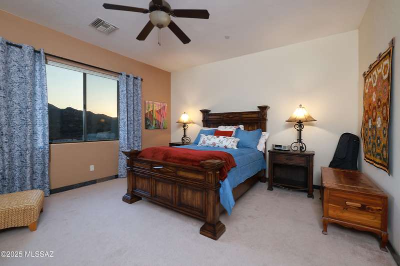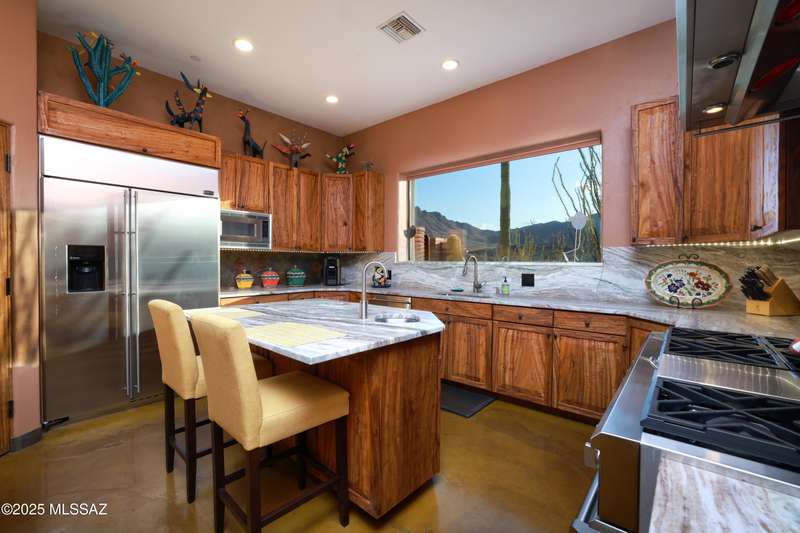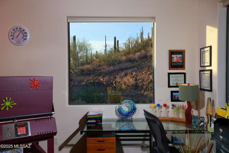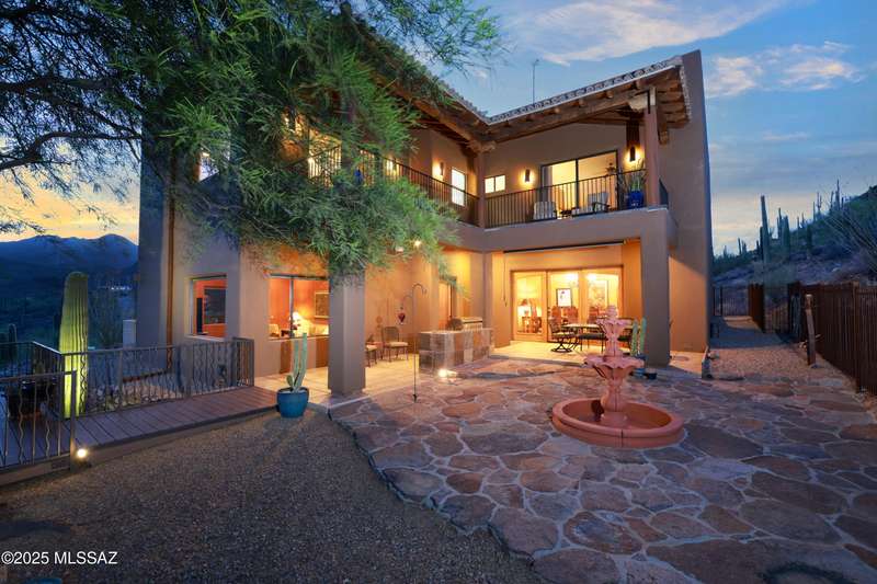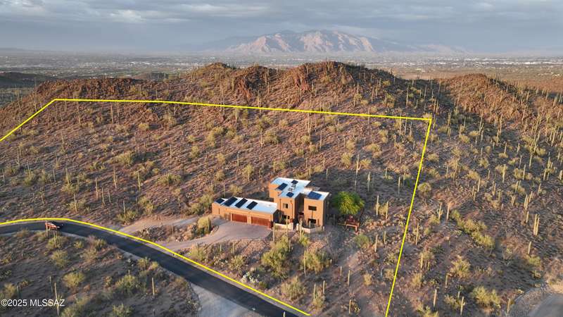 Perched on a tranquil hillside w/stunning panoramic views from every window, this one-of-a-kind custom home offers luxury, privacy & timeless craftsmanship. Built w/energy-efficient ICF construction & powered by owned solar, enjoy an avg elec bill of just $100/yr! Interior highlights incl imported hand-crafted Alamo cabinetry & doors, elegant granite counters and a climate-controlled dbl-door wine cellar. The monster 1,500 SF 4-C Gar is thoughtfully designed so half can easily serve as a fully equipped workshop, home gym or creative studio. Entertain or unwind on the scenic deck, two patios or the upstairs balcony w/sweeping mountain and city light views. Many upgrades thruout. Gated commty, No HOA and only minutes to I-10 & downtown. Walking distance to Sweetwater Preserve Trails.