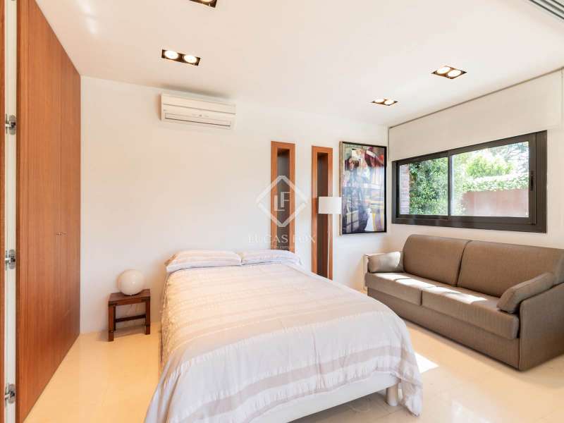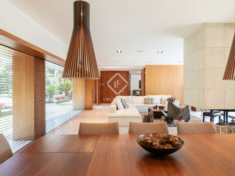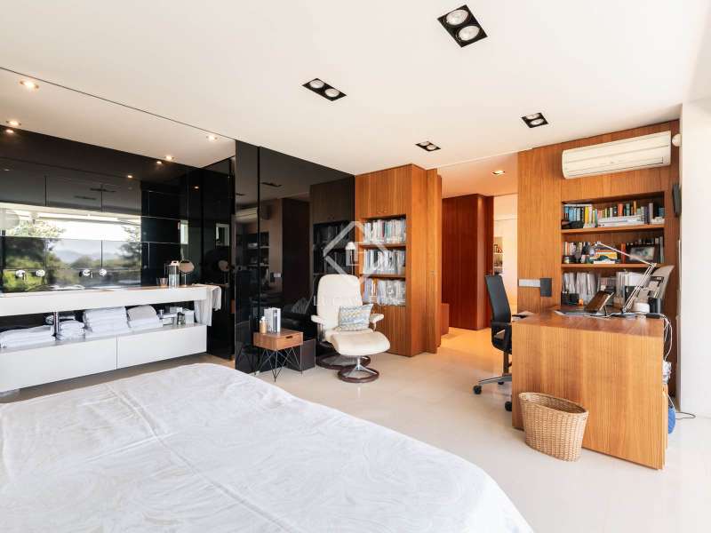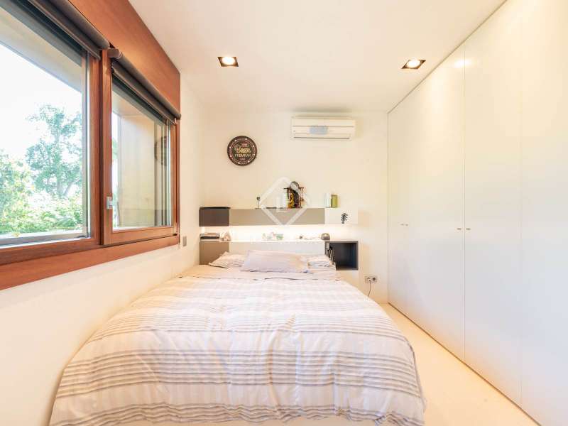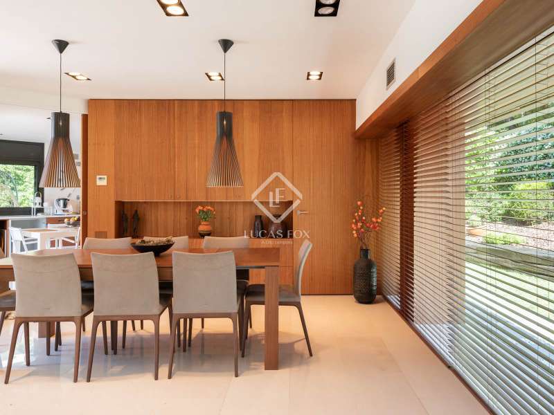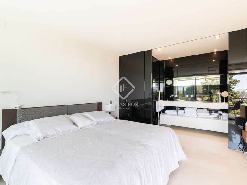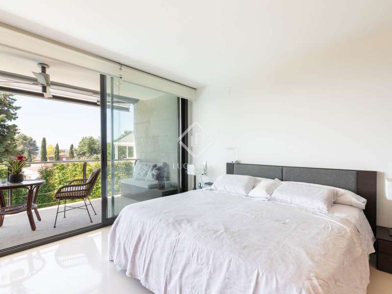 Lucas Fox is pleased to present this exclusive avant-garde style home in one of the most prestigious and privileged residential areas of Bellaterra. The property has 429 m² of built area on a 984 m² plot . It is characterized by its southerly aspect and privileged location, with wonderful views of Collserola. This luxurious property boasts an elegant, contemporary, avant-garde design with modern architectural lines, ideal for those seeking a unique and exclusive property . We enter through the ground floor, where we find the fully equipped day area . It features a semi-open kitchen, designed with high-end materials. There is also a double bedroom that can be used for different purposes, a full bathroom , and a large living-dining room with large windows and a beautiful fireplace, which adds warmth to the space. The living room access onto the beautiful garden with a large pool and waterfall. From the property, you can enjoy stunning views of Tibidabo. The upper floor houses a bright living room, an study , and two double bedrooms, each with its own full bathroom and stunning views. The master bedroom features a large dressing room and access to a private terrace with unparalleled panoramic views. Finally, on the lower ground floor, we have a large parking lot with capacity for three cars, a gym, a water room and a gym. In terms of efficiency and comfort, the house is equipped with underfloor heating and solar panels. A perfect property for those who value designer architecture, privacy, and an excellent location just minutes from Barcelona and close to all amenities. Contact us for more information.