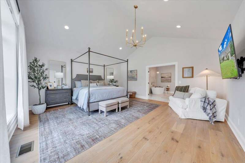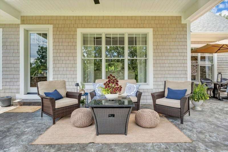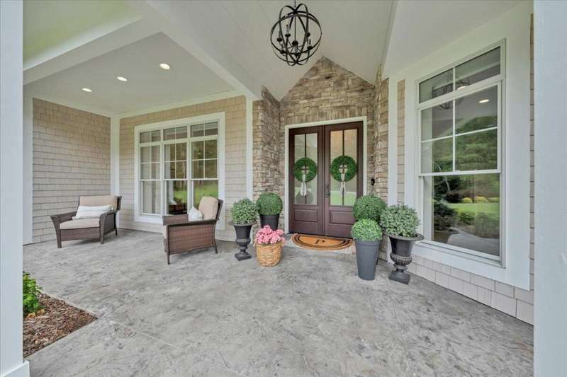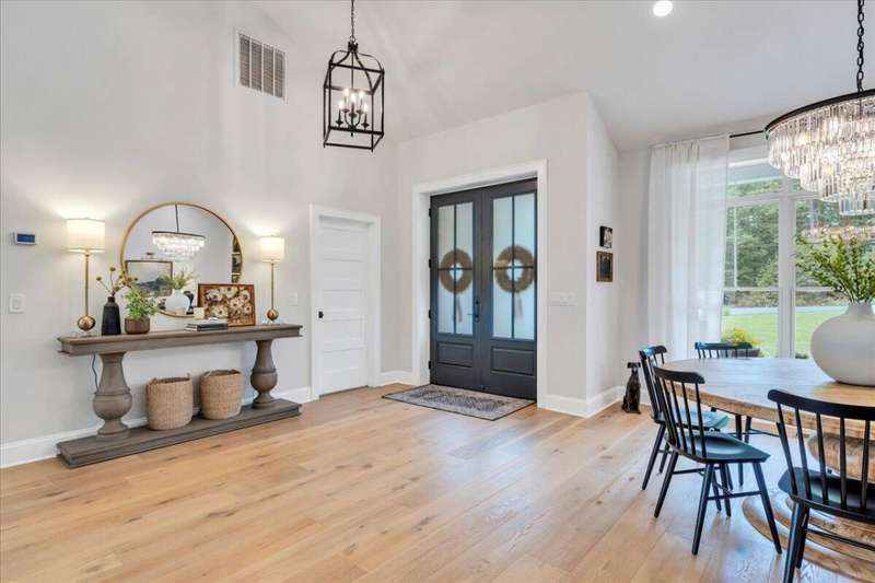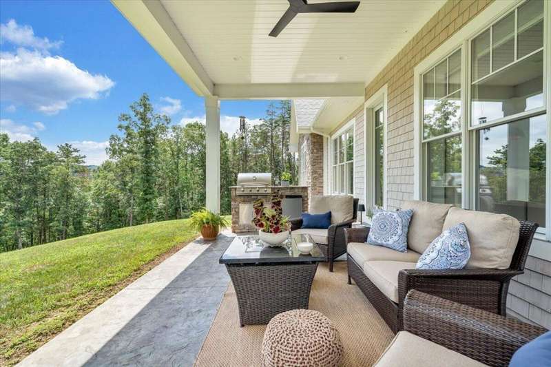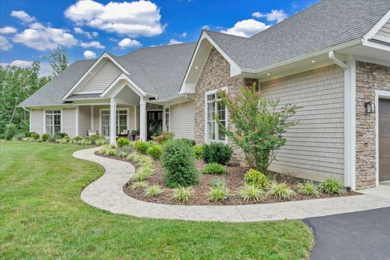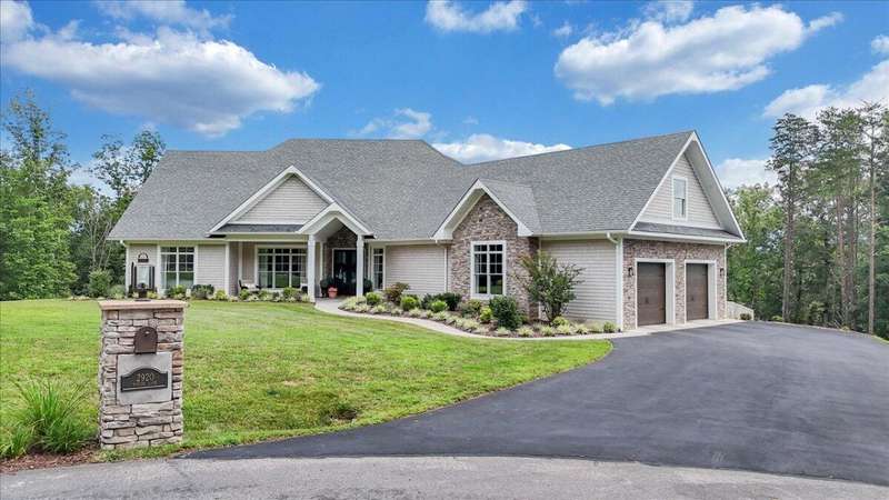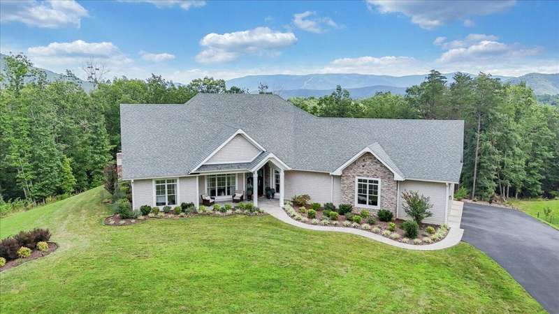 Absolutely exquisite! Come home to easy elegance in this four-year-old custom estate, tucked away on quiet acreage just twenty minutes from Roanoke & the NRV. You'll know you've arrived the moment you step inside: soaring cathedral ceilings, a gourmet kitchen for lavish entertaining, & a flowing floorplan that offers both grand-scale gathering areas & intimate retreats. Outside, the rear terrace boasts sweeping winter mountain vistas--perfect for your morning coffee or for cozy gatherings around the outdoor fireplace. Inside, three main-floor bedrooms are filled with designer touches, & the upper-level bonus suite offers accommodations for everyone you love. Escape to your owner's suite-tucked away in a quiet wing off the main floor-featuring a celeb-worthy bespoke closet & spa bath.