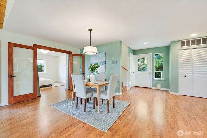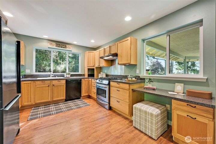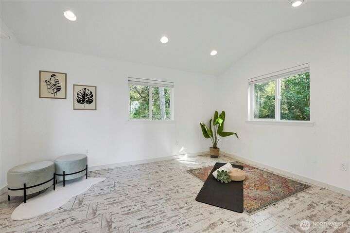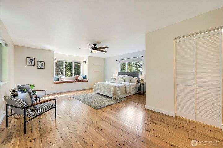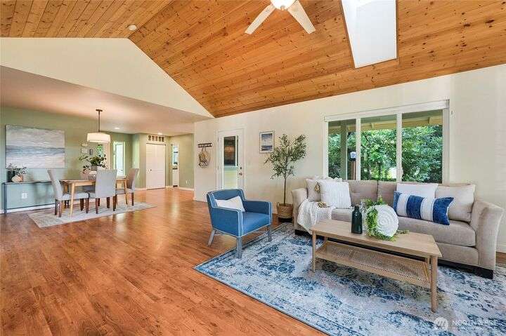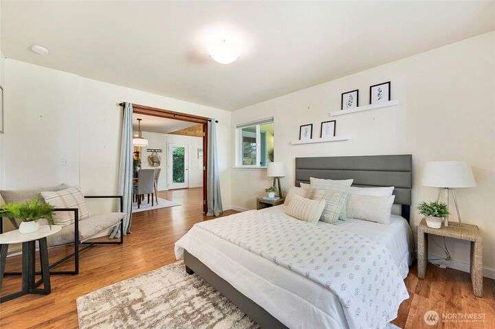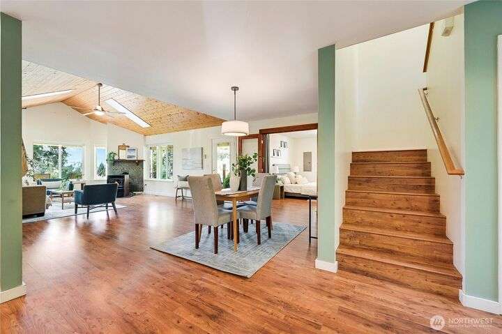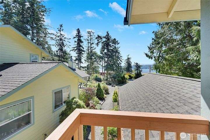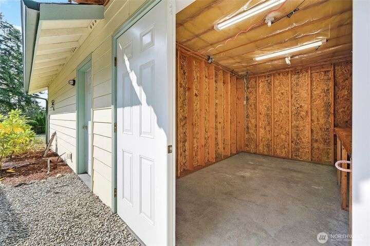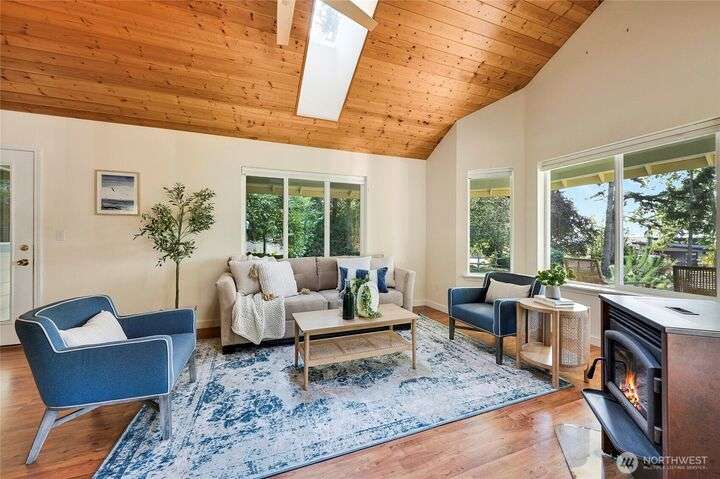 Charming south-facing home on tranquil Marrowstone Island w/ peek-a-boo water views. Vaulted cedar ceilings, a cozy pellet stove & abundant windows create a warm, inviting space. Well-appointed kitchen w/ propane cooktop opens to the dining area. Spacious main-floor bedroom offers walk-in closet & full bath w/ jetted tub while the oversized bedroom upstairs features views, a walk-in closet & ¾ bath. Detached single-car garage includes a private art studio w/ views & workshop below. Plus an additional studio behind the home creates a ideal gym, craft, or bunk room. Enjoy evenings on the wrap-around porch overlooking a thoughtfully planted yard with fruit trees & garden space, or relax on the spacious private patio.
