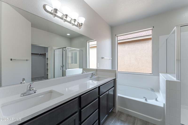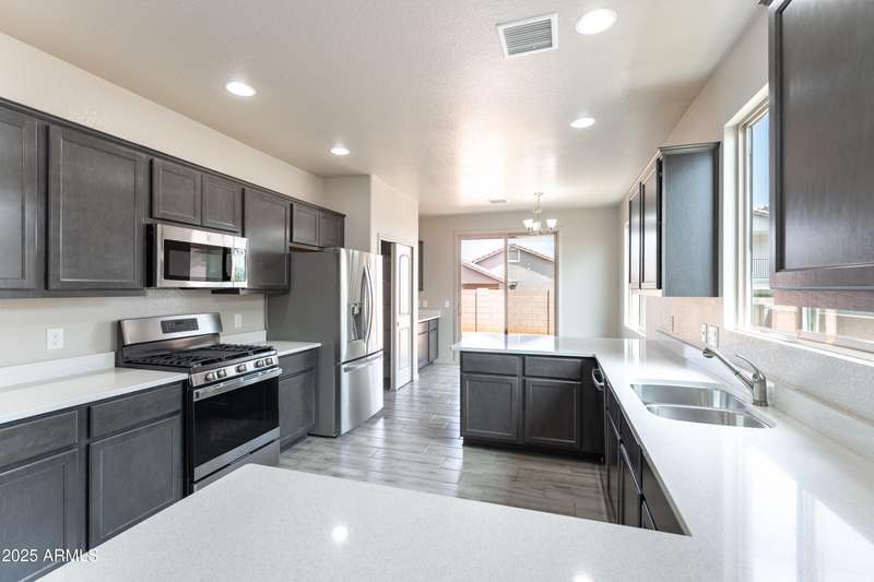 In desirable Summit Heights, minutes to Ft Huachuca & no HOA! Open concept 4BD/2.5BA with 2-car garage, 2021 sqft home! Kitchen features 36'' Slate Gray Maple cabinets, quartz countertops, breakfast bar, stainless appliances, and nook. Split plan master suite with huge walk-in closet, separate garden tub and tiled walk-in shower with corner shelves. Baths feature executive height vanities, quartz counters, and rectangle undermount sinks. Wood look tile flooring throughout with upgraded carpet in bedrooms. Ceiling fans in great room & master bedroom, pre-wired in other bedrooms. Plumbed for soft water loop & fridge/freezer outlet in garage. Front yard irrigation added for easy care landscaping. Energy Star Certified home with Environments for Living Guaranteed!