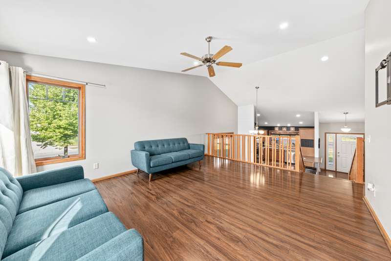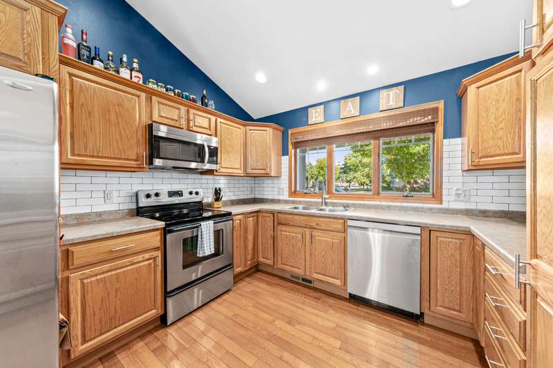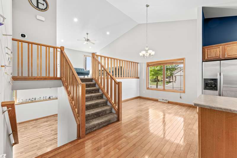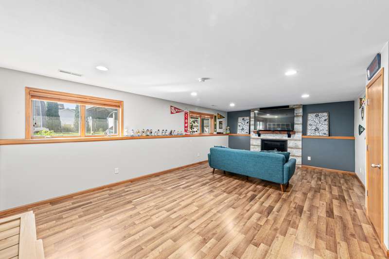Meet convenience at its finest! This versatile floor plan offers 4 bedrooms, 3 full baths and an array of amenities just minutes from your front door. Covered porch entry greets guests and protects them from the elements. Step inside to soaring volume ceilings and loads of natural light. The foyer, dressed in hardwood, is flanked by a drop-zone style locker setup. The culinary center boasts three picture perfect windows, subway tile, stainless steel appliances, pantry, snack bar and gas range. Bon Appetit! Adjacent dining area is large enough for friends and family to gather. The great room enjoys an elevated vantage point to enjoy all the action of the household. Access out to the deck affords ease to outdoor activity. Low maintenance composite deck with stairs leading down to the patio and yard. Desire more exciting outdoor festivities then head to Nordic Ridge Park equipped with on demand Splash Pad, Playground and Picnic Pavilion! So much fun awaits! Lower level family room with daylight windows and a gas fireplace are a perfect retreat for the Packer and Badger seasons! Go Pack Go! Can you taste the cheese dip?! The primary en-suite is host to a large walk-in-closet and well-appointed bath. Two additional bedrooms on this level share a hall bath. The lower level family room, bedroom and office have their own full bath to share. YES, you even have an office so working from home will be delightful! No more sitting at the dining table. Seeking box store discounts, Walmart Supercenter is blocks away. Wisconsin?s favorite Kwik Trip for fueling up and grabbing a snack. If you want a dinner date with a quaint vibe then hit up downtown Stoughton for Cheesers, Viking Brew Pub and Dairyland Dessert Cafe. Grab breakfast treats at Fosdal Bakery. Head to Deak's for their Bus Trips to Badger Games! Not sure that life could get much better than this! Oh wait there is more! New Furnace and Central Air 2023! Solar Panels to reduce your monthly expenses! Who doesn't love to save a little bit of cash!? Convenience is at your fingertips?..do not let it slip away!