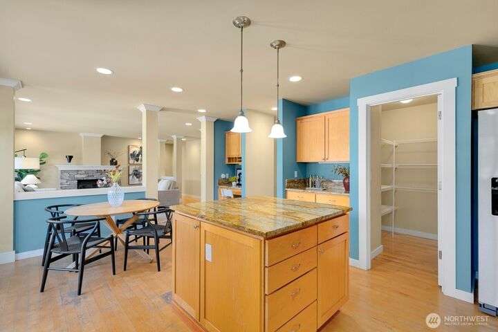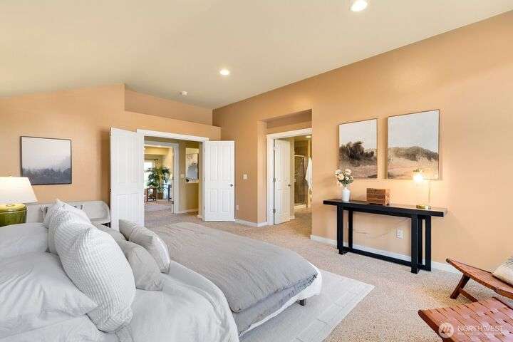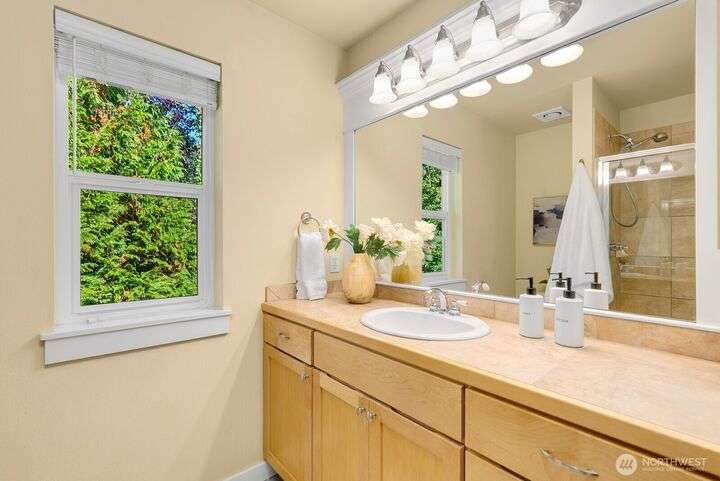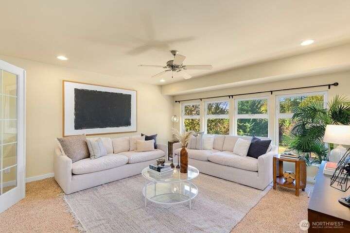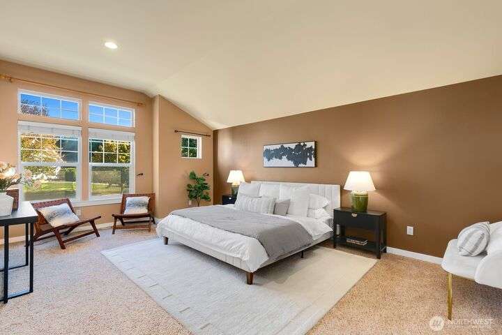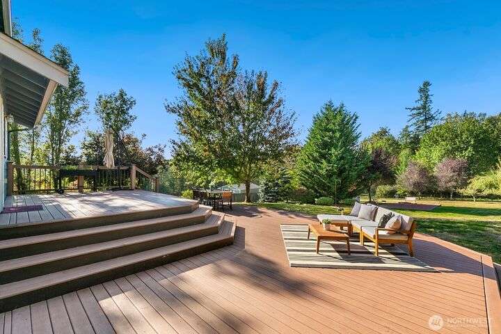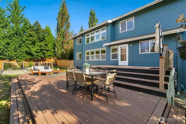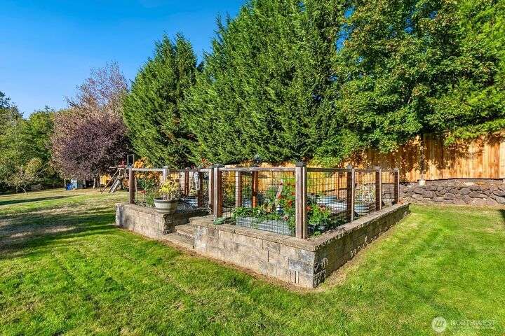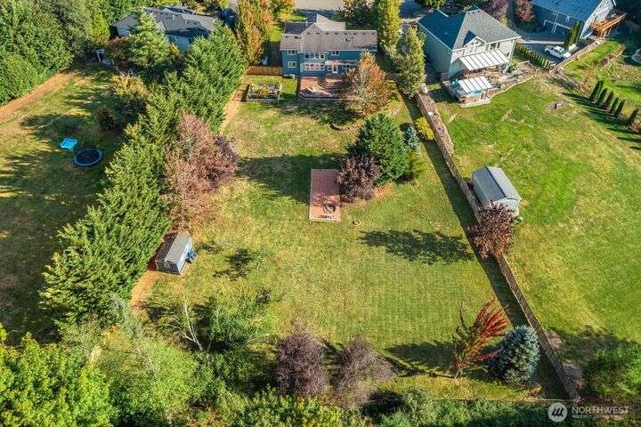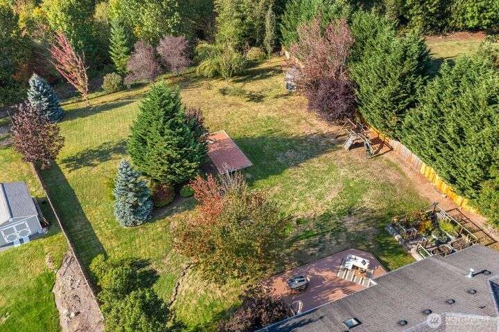 On a spectacular lot- just shy of an acre- this stunning 4 bdrm (+ bonus rm+ office), 3 bath home boasts over 3,200 sq ft of updated living space. Vaulted ceilings & walls of windows flood the formal living & dining rooms w/natural light & sweeping views of nature. Updated kitchen w/pantry & casual dining area flows seamlessly into spacious den w/fireplace, opening to generous deck overlooking fully fenced yard w/playgrnd, garden beds & incredible sunsets. Main floor office (guest room?). Upper level features primary w/2 walk-in closets/dbl vanities & soaking tub + 3 add'l bdrms. Massive bonus room (5th bdrm?) provides the perfect home theatre or rec room. Spacious 3 car garage + shed, AC, wired for generator. Preinspected. Welcome Home!