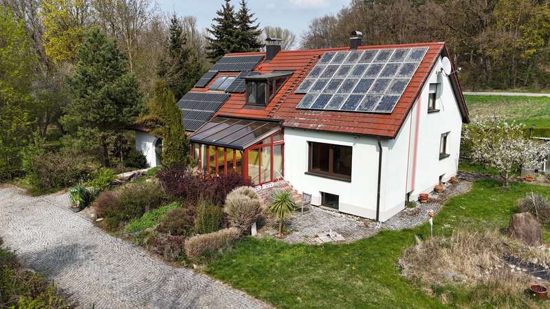 This modernized detached house from 1973 offers plenty of space on approx. 202 m² of living space for families looking for a solid home in the countryside - with good connections to Landshut and the surrounding area. The approx. 1,140 m² plot offers plenty of space for playing, gardening or relaxing outdoors. The house underwent extensive energy modernization in 2020: An efficient heat pump with storage tank, together with an extended photovoltaic system and full thermal insulation, ensure a sustainable energy concept and low operating costs. The room layout is generous: there are a total of four rooms, three of which are well-designed bedrooms, and two modern bathrooms. The large wellness bathroom offers a walk-in shower as well as a free-standing bathtub. An integrated sauna rounds off the feel-good offer. The kitchen is practically laid out, has a pantry and is connected to the bright conservatory via a hatch - ideal for socializing with family and friends. The basement with natural light offers plenty of storage space as well as room for a workbench or hobby area. The garage is large enough for a car, bicycles and more. Note: The proximity to the main road ensures good transport links - if you can live with a little ambient noise, you will benefit from an attractive price-performance ratio here. You are welcome to take the 360-degree tour to get a first impression of the property: https://tour.giraffe360.com/dcb8591241f14ec2a078a3bb96c29986/ See the possibilities this house offers for yourself during an on-site viewing.