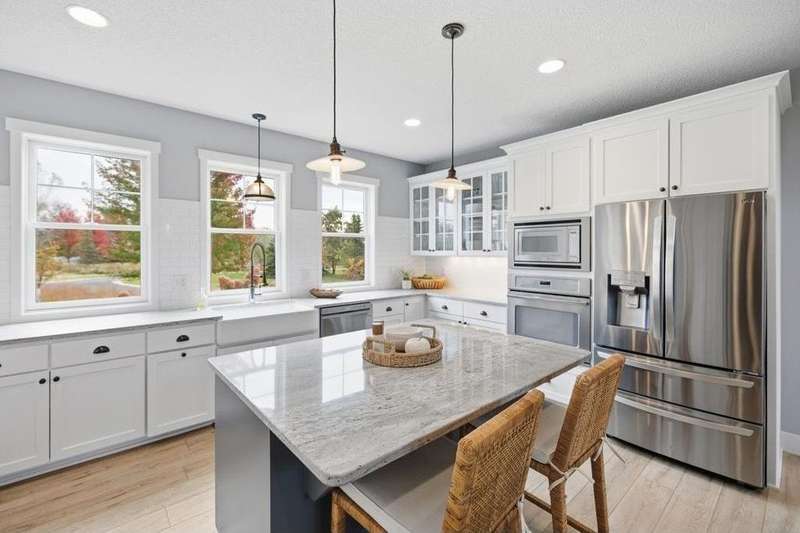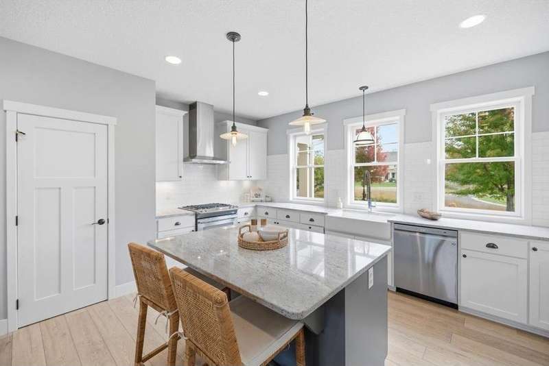This beautifully crafted 4 bedroom, 4 bathroom home built by Main Street Builders is nestled perfectly in the stunning Tapestry neighborhood of Lake Elmo. From the inviting front porch complete with a swing to the thoughtfully designed interior, every detail of this home blends timeless charm with modern comfort. Step inside to discover a bright and airy main level featuring vaulted ceilings, Andersen thermopane insulated windows, a gas fireplace with a brick surround that creates a warm, welcoming focal point. The kitchen boasts elegant granite countertops, ample cabinetry and an open layout perfect for entertaining. The main floor primary suite offers a peaceful retreat with a walk-in closet and spa-inspired bathroom showcasing a free-standing soaking tub, walk-in shower with seamless glass for and dual bowl vanity. Throughout the home, you’ll find unique character touches including barn doors, a built-in reclaimed wood desk and a charming bonus room with reclaimed wood shelving — a perfect blend of music and refined. The recently finished lower level expands your living space with luxury vinyl tile flooring, a large recreation room ideal for a pool table, ping pong table or knee hockey and a wet bar complete with floating shelves, a beverage fridge and a bar island with seating. This home has amazing curb appeal featuring cedar shakes, metal roof detail and a brand new roof (2023) for added peace of mind. The home is connected to city water and city sewer and is perfectly placed in one of Lake Elmo’s most picturesque communities. Don’t miss this opportunity to own a charming yet modern home that combines craftsmanship, comfort and character in one of Lake Elmo’s most desirable neighborhoods. Buyer to assume the special assessment.