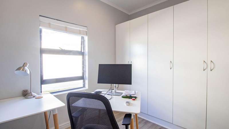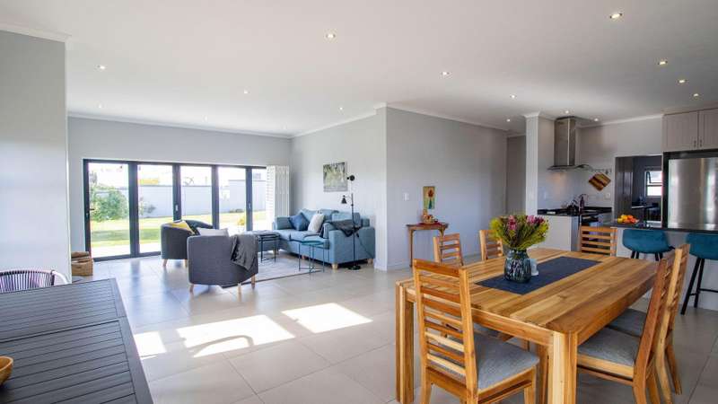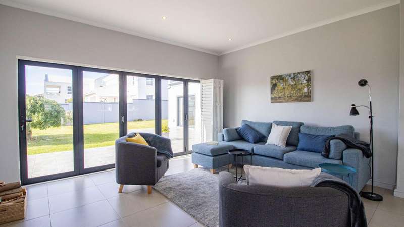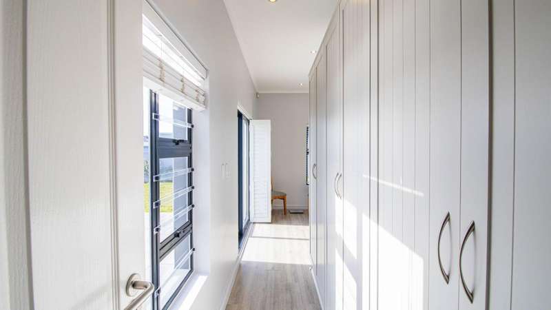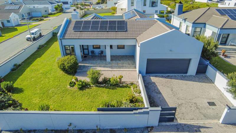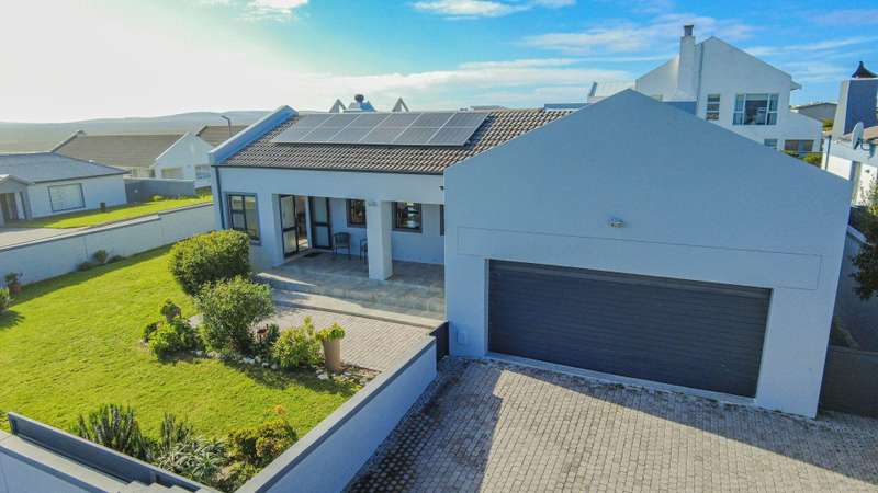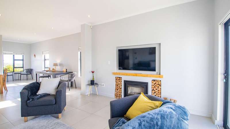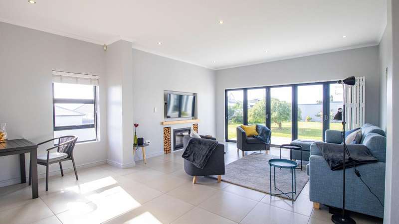 Escape to your own private sanctuary with this charming, off-grid three-bedroom home, designed for sustainable and comfortable living. Chas Everitt is proud to offer this Exclusive Sole Haven of Light and Comfort Step inside and be greeted by a light-filled, open-plan living area, perfect for both relaxing and entertaining. The cozy fireplace creates a warm ambiance for those chilly winter evenings. The living space seamlessly extends to the back garden through sleek stacker doors, bringing the outdoors in. The stylish kitchen features an open-plan layout with a dedicated dining area and a separate scullery, providing ample space for culinary creativity. The home is bathed in sunlight, especially on the northern side, where a large stoep (veranda) invites you to enjoy your morning coffee or an evening sundowner. The spacious main bedroom is a true retreat, offering abundant built-in cupboards for all your storage needs. Stacker doors and shutters provide both privacy and light control. The generous en-suite bathroom is a spa-like escape, featuring a large walk-in shower, double basin, and toilet. The second bedroom easily accommodates a double bed, while the third bedroom is currently utilized as a study, offering a quiet space for work or hobbies. Two additional guest bathrooms, one with a bath and the other with a shower, ensure convenience for family and visitors. Embrace an independent lifestyle with the home's impressive off-grid system, which includes a Sunsync inverter with two batteries and 12 solar panels, providing reliable power and peace of mind. A double garage with direct access to the house adds to the convenience and security. The property boasts a sprawling, well-maintained garden, offering a safe and private space for children to play or a blank canvas for avid gardeners to create their dream landscape. This home is a perfect blend of modern comfort and sustainable living, ready for you to move in and enjoy.