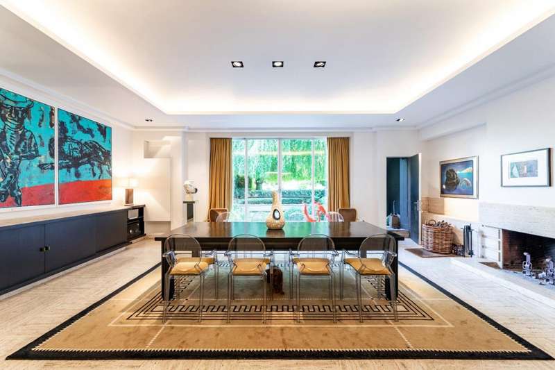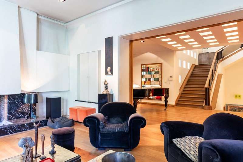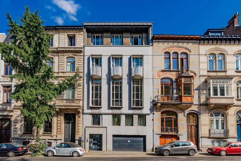 In the immediate vicinity of Place Brugmann, exceptional 1939 Art Deco-style mansion house, approx. 1,200 m², set in 14.5 acres of parkland accessible via a carriage entrance. The property is currently divided into 2 parts: superb rear house, +/- 691 m² opening onto a splendid garden + vast basement, 5 bedrooms, 5 bathrooms. EPC F. On the front facade, an investment property with 3 apartments, including 1 duplex +/- 170 m² (EPC C-), 1 Apartment +/- 85 m² (EPC C-) and 1 penthouse +/- 114 m² (EPC G). 2 garages, lift.