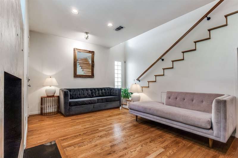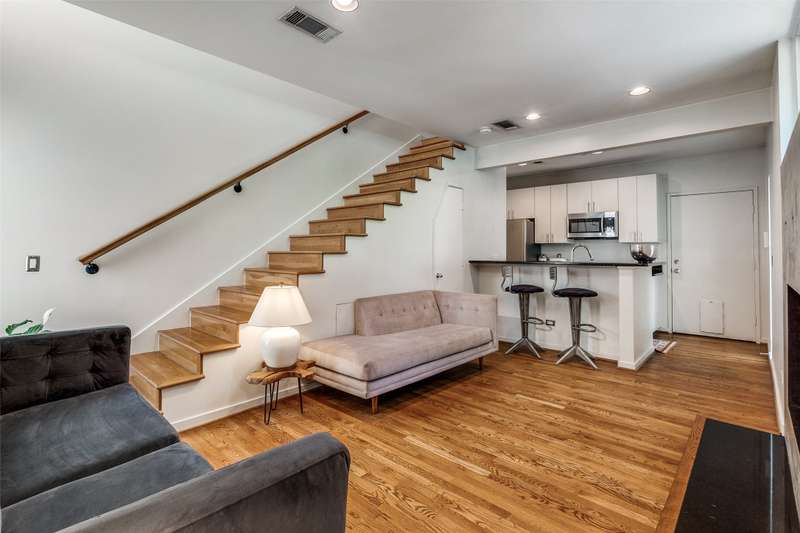 Beautiful Modern Chic 1 Bedroom, 1.1 Bath designed by Ron Wommack. One block away from Katy Trail, and your favorite shops & restaurants off Fitzhugh & Knox. Downstairs living area includes hardwood floors, and a custom concrete fireplace. Open kitchen includes updated, stainless-steel appliances and direct access to the attached garage - a rarity for the building. Upstairs you will find a spacious Master Suite with built-in bookshelves and a large walk-in closet, custom drapes from The Shade Store and gorgeous entry door hardware from House of Antique Hardware. Spa-like ensuite bath includes double sink vanity, as well as an oversized shower. AC Unit purchased in 2022.Buyer and Buyer Agent to confirm all information is correct.