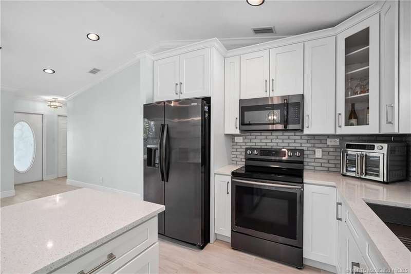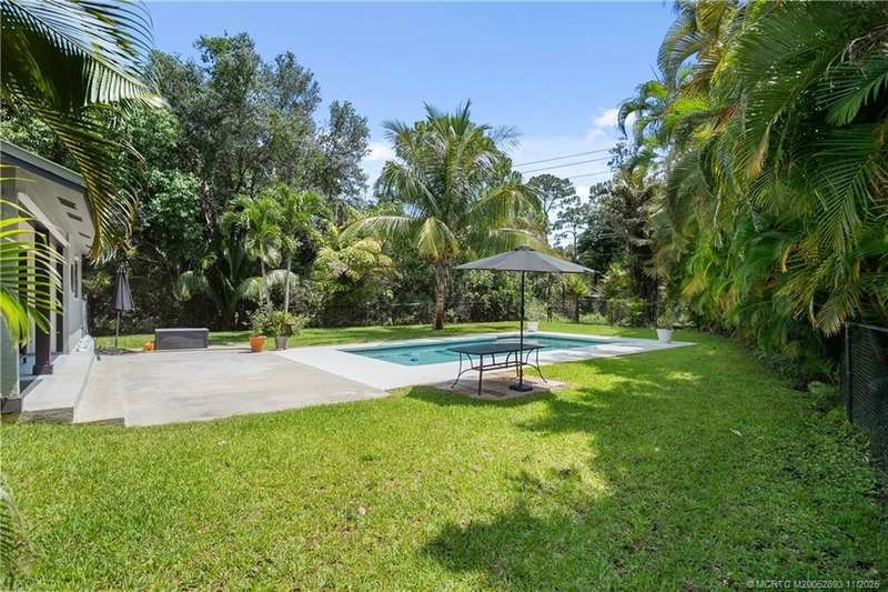 Private tr?p??cal r?tr??t w??th ???? HOA & a gorgeous ??o?l. Beautifully maintained 3/2 pool home offers 1,350 square feet of comfortable living space on a spacious private 0.32-acre lot. Open-concept layout featuring tile flooring, brand new cabinets & quartz countertops. The backyard is an oasis with a 15x30 pool surrounded by lush tropical landscaping & a mature wooded county lot next door. Additional features include a 2-car attached garage and a metal roof. This home was built in 1990 and has only ever had 2 owners. Experience the perfect blend of comfort, privacy, and Florida charm in this home close to beaches, dining, banking, grocery stores and all that Stuart has to offer.