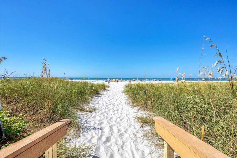 Your Gulf-front dream awaits at Sunset Vistas Beachfront Suites, where every day feels like vacation and every stay brings income potential! This highly desirable 2-bedroom, 1.5-bath condo offers partial views of both the Gulf of Mexico and sparkling sands of Treasure Island, perfectly blending resort-style living with an incredible investment opportunity. Imagine waking up to Gulf breezes, stepping onto the sugar-sand beach just steps from your door, and watching vibrant sunsets paint the horizon — all from your very own private retreat. This turn-key condo comes fully furnished and thoughtfully decorated with fresh coastal décor. Inside, enjoy a bright and open layout with granite countertops, breakfast bar, dining area, comfortable living room, three flat-screen TVs, and the convenience of an in-unit washer/dryer. Every detail is designed for comfort, convenience, and effortless enjoyment. Outside, indulge in unmatched amenities: a beachfront pool and spa, a whimsical splash pool with fountains, a lively tiki bar, on-site café, and a well-equipped fitness center. With an assigned parking spot and a prime location less than half a mile from world-famous John’s Pass Village & Boardwalk, you and your guests will enjoy endless options for dining, shopping, and entertainment. Sunset Vista is more than a condo — it’s a lifestyle, a proven income stream, and a place where memories are made. With a history of happy repeat guests and strong rental performance, this is the perfect opportunity to own a piece of paradise that delivers personal enjoyment and financial rewards. Whether you keep it as your own private escape, share it with vacationers, or do both — the possibilities are as endless as the views.