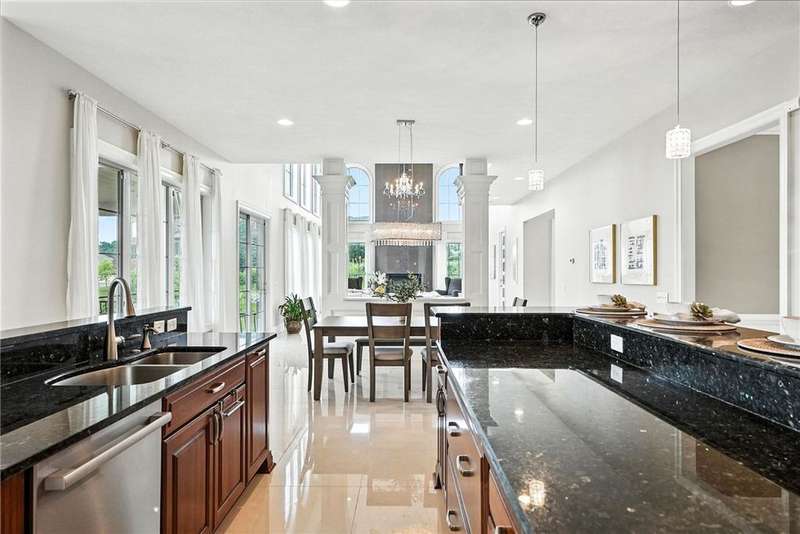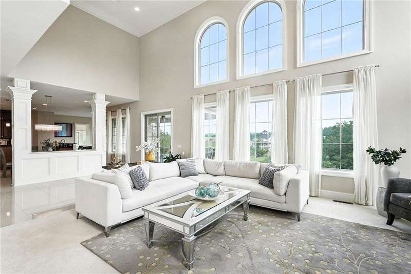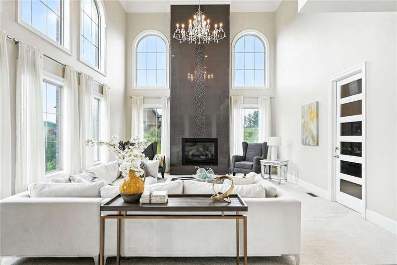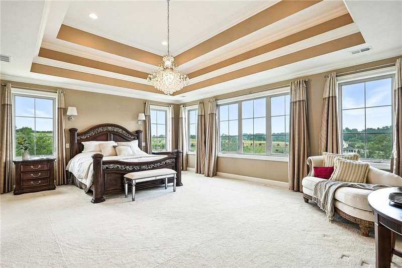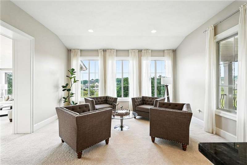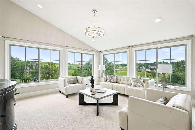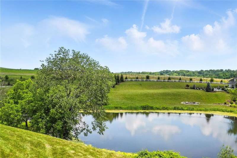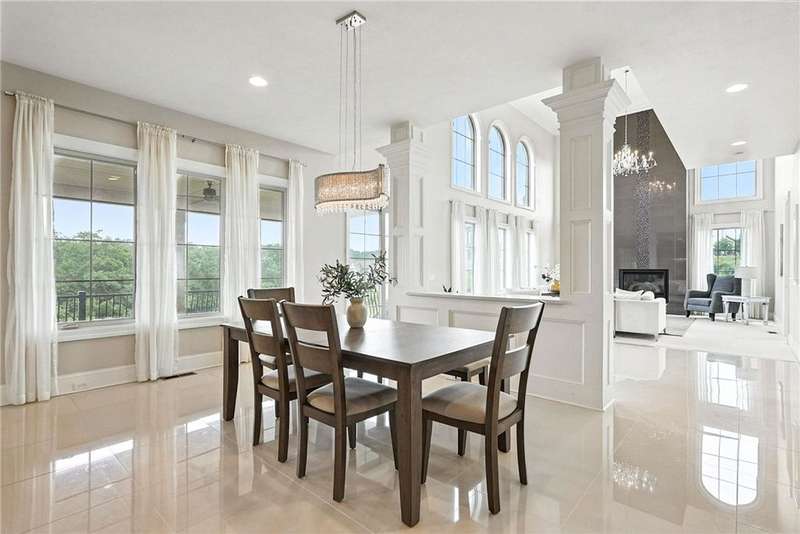 Experience the pinnacle of luxury living in this exceptional 5-bedroom, 5.5-bath estate. Set on 1.65 acres with pond access, this home is a private oasis. Step inside to discover gleaming marble flooring and soaring ceilings. Dramatic walls of glass steal the show- massive floor-to-ceiling windows wrap nearly every living space, delivering panoramic views from every angle. The chef's kitchen is a dream, outfitted with top-of-the-line Wolf and Sub-Zero appliances, dual oversized islands, custom cabinetry and designer finishes. A great room bathed in natural light, cozy sitting room, and formal dining area offer spaces for grand entertaining. Retreat upstairs via the private elevator to four spacious en-suite bedrooms, including a primary suite which takes full advantage of the views with its own wall of glass, luxury bath and dual walk-in closets. Lower-level walk-out features additional 2,624 SF, with a sitting room with gas fireplace, wet bar, media room, home gym and 5th bedroom.