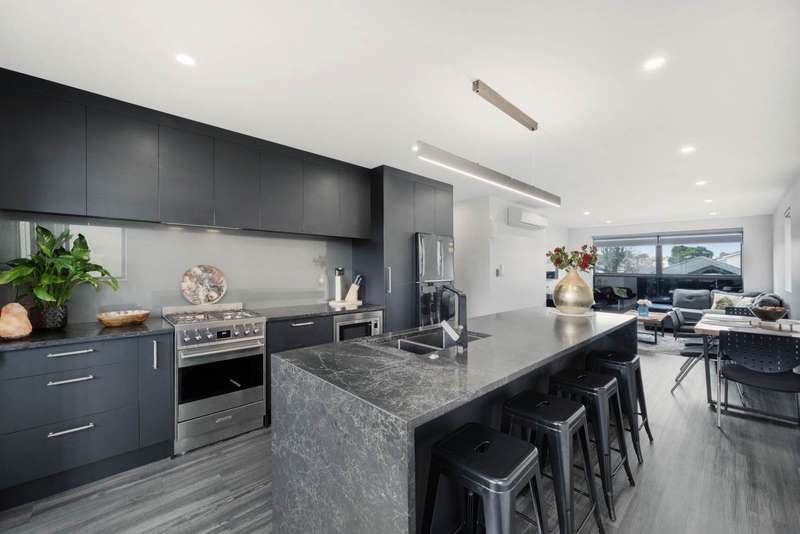 Positioned in a sought-after Royal Oak location, this near-new residence blends contemporary design with everyday practicality, offering space, style, and convenience for modern family living. Featuring approx. 262m² across three levels, the home includes four double bedrooms and four bathrooms (three with ensuites), along with multiple living areas to suit families, extended households, or those who enjoy entertaining. The well-appointed kitchen with butler’s pantry and Bosch appliances flows seamlessly to sun-filled outdoor spaces. Expansive outdoor living includes a generous second-floor balcony plus a near-40m² third-floor deck with elevated reserve views—perfect for relaxation or entertaining. Year-round comfort is assured with ducted heating/air conditioning, bedroom climate control, and the security of a double garage and smart systems. Set on easy-care landscaped grounds, this striking home is just minutes’ walk to Royal Oak Mall, cafés, and everyday amenities, with One Tree Hill Domain and excellent schooling nearby. An exceptional lifestyle opportunity in a prime central location – call today for viewing time.