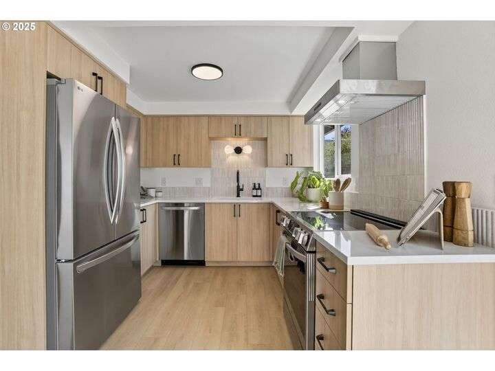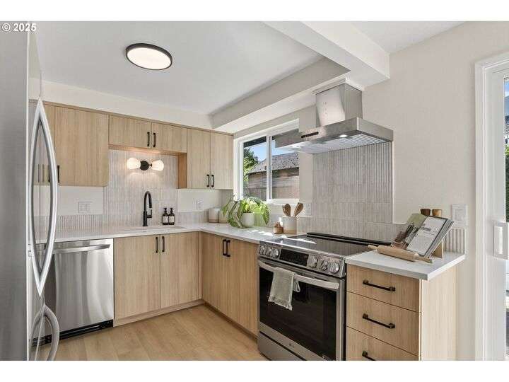 Stylishly Remodeled & Truly Move-In Ready! This beautifully updated 3-bedroom, 2-bath ranch combines modern design with everyday comfort. Inside, you’ll find brand-new LVP flooring, a fully renovated kitchen with sleek cabinetry, quartz countertops, stainless steel appliances, and updated lighting. Both bathrooms have been transformed with designer tile, contemporary fixtures, and chic new vanities. Fresh interior and exterior paint give the home a crisp, modern feel, while the new garage door and landscaping adds to its curb appeal. Stay cool with central A/C, and enjoy the spacious backyard—perfect for summer entertaining or quiet evenings outdoors.