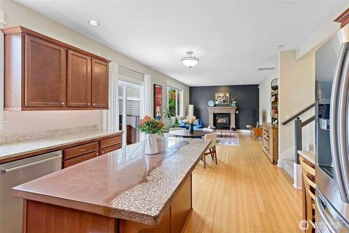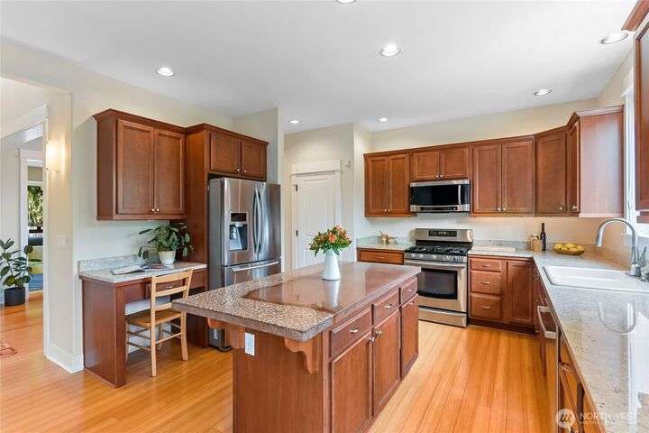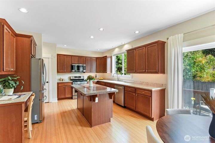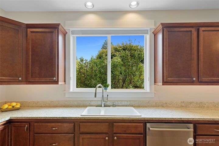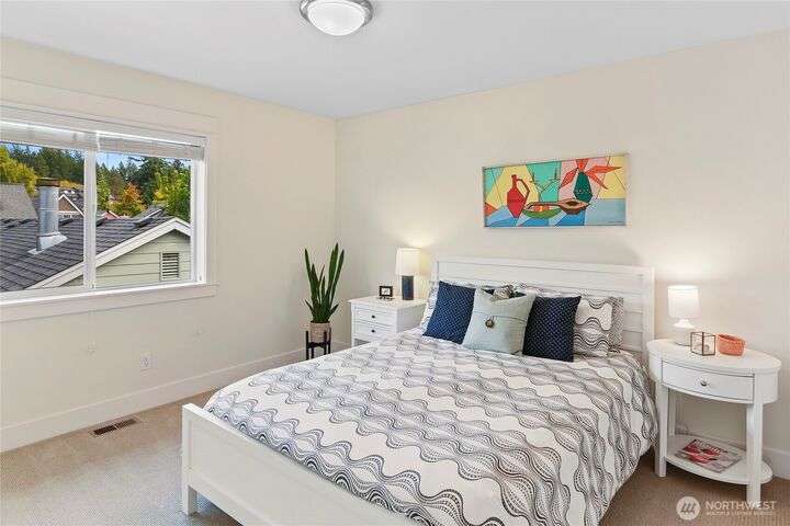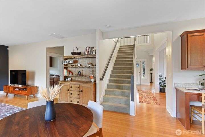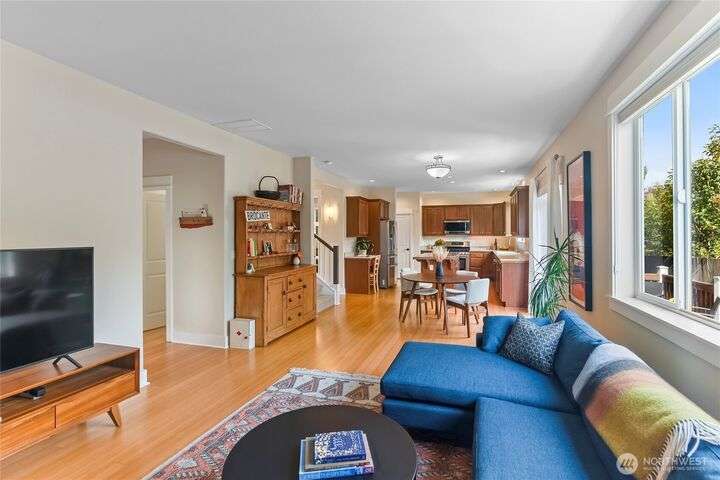 Boasting one of the most substantial home sizes & bedroom counts within a short walk to downtown & two waterfront parks, this home offers in-town living w/o the sacrifice usually faced with downsizing. Tucked on a quiet street, backed up to open space and perched on a knoll, enjoy views over neighboring Poulsbo Place w/o CCR’s or HOA dues. Abundant, large windows compliment high ceilings to provide a bright airiness that is rare in a traditional floorplan. Benefit from room for office, gym, hobbies, and low maintenance yard for pets. The newer heat pump and appliances, along with meticulous maintenance, have this property still feeling immaculate and new. If you’re looking for efficiency and value in Little Norway, look no further.