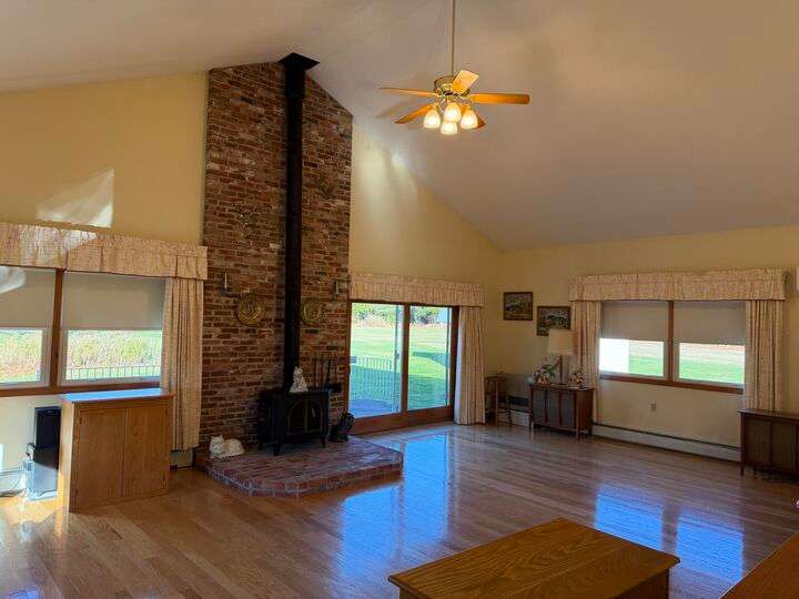 Welcome to this extraordinary property that perfectly blends comfort and charm. This beautifully designed home showcases a spacious open-concept living room, kitchen, and dining area highlighted by soaring cathedral ceilings, wood burning fireplace, hardwood floors and sun-drenched spaces ideal for both everyday living and entertaining. Step out onto the large deck to take in serene views of your grassy, level yard. With five generous bedrooms and three full bathrooms, this home offers abundant space for family and guests alike. The primary suite provides a private oasis and walk-in closet, while the dedicated laundry room adds everyday convenience. Car enthusiasts and hobbyists will appreciate the oversized two-car garage tucked beneath the home, complemented by a detached drive-in/drive-out garage with full storage above, plus a large shed for additional versatility. Set on 5± beautifully maintained acres in the heart of Belgrade Lakes, this property offers the rare combination of privacy, open space, and proximity to the region's premier lakes, golf courses, and charming village amenities—all just a short drive to Waterville and Augusta. Experience the perfect balance in this spacious home!