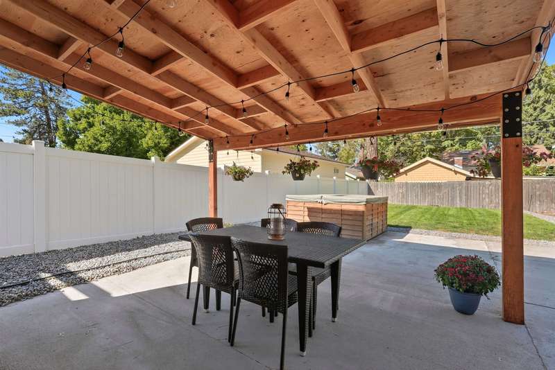 Welcome home to one of Spokane’s most coveted neighborhoods near Manito, Comstock, Cannon Hill and the Japanese Gardens, this 4 bed, 3 bath brick home blends historic charm with modern updates. The renovated kitchen features quartz counters, a center island, pantry, tile accents and beadboard detail, opening to both formal and informal living areas. Fresh paint, new vanities, refinished fireplace mantle, and updated LED lighting add a bright, polished feel. A main floor spacious primary suite enjoys abundant natural light. Recent improvements include new roof in 2025, fresh exterior paint, new refrigerator, washer/dryer, and all new vinyl windows within the last 6 years. Step outside to a fully reimagined backyard with expanded patio and cover, fresh sod, roses, hydrangeas and hot tub. A two-car garage with water/sewer offers potential for an in-law setup. Central A/C, gas furnace, and great schools complete this move-in-ready gem