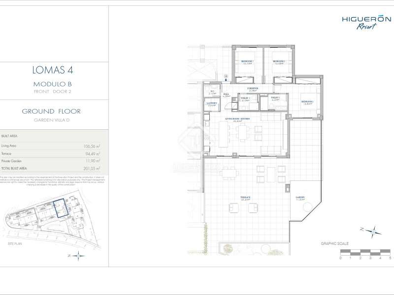 Lomas del Higueron 4 is a new residential complex located in the 5-star Higuerón Resort, the most exclusive Resort on the Costa del Sol, where you will find the 5-star Higuerón Hotel with its 10 restaurants, spa, sports centre, beach club and more. The complex is surrounded by nature and benefits from a swimming pool, gym, co-working spaces, a concierge service, 100,000 m² of gardens and green areas, a 24-hour security service and an exclusive tram service that will take you to the beach, the nearby shopping centre and Carvajal train station. This ground floor apartment has 3 bedrooms and 3 bathrooms and is in a block of three levels with sea views and plenty of privacy in each home. The penthouse has a pleasant airy living area and measures 201 m² plus private terrace space of 94 m² and a garden of 11 m² where you can enjoy the wonderful local climate. Sustainability and innovation are two of the driving forces behind the design of these contemporary luxury homes, which also boast elegant modern interiors with the very finest finishes and fixtures, such as Silestone kitchen work surfaces, Teka sanitary ware and heated bathroom floors, just to name a few. Finally, each property comes with two parking spaces and a storage unit. Please contact us for further information.