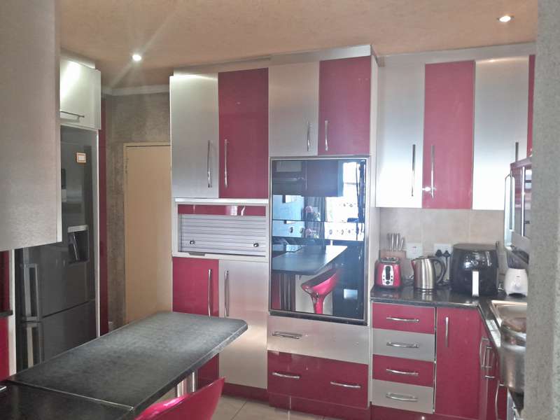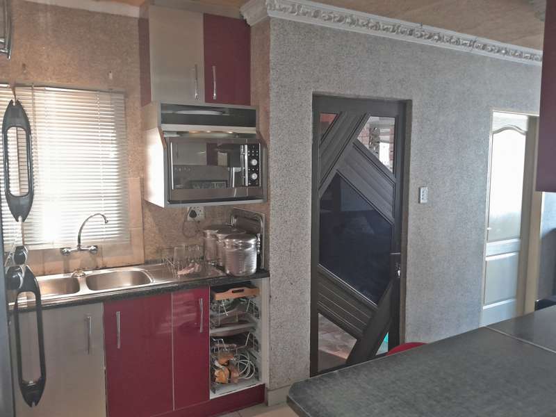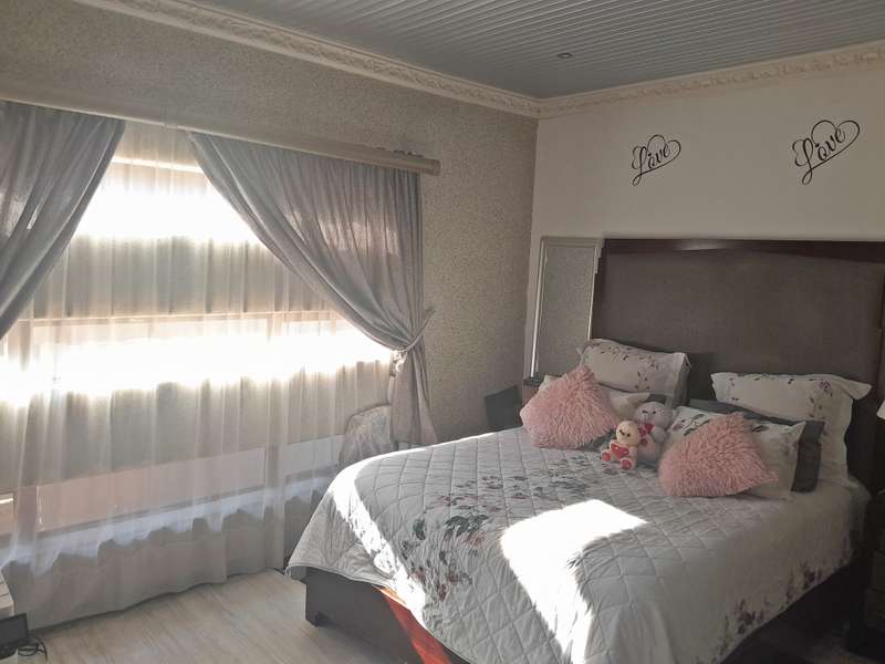 This beautifully designed modern 3-bedroom house offers the perfect blend of style, comfort, and convenience. Featuring a spacious open-plan layout, the home boasts a sleek gloss-finished kitchen that flows seamlessly into the living and dining areas—ideal for family living and entertaining. The main bedroom is generously sized, complete with built-in cupboards, an en-suite bathroom with a shower, and a sliding door for extra light and access. The two additional bedrooms are also spacious, comfortably fitting either two single beds or a double bed, making them ideal for children, guests, or a home office setup. The property includes a guest bathroom, a secure single garage, and a large carport that can accommodate up to three vehicles. Fully walled for added security and peace of mind, the home is located in a quiet, safe neighborhood. Conveniently situated near a top-rated school, a mini shopping complex, a petrol station, a private hospital, and just a short drive from the airport. Golf lovers will appreciate the proximity to two of Bloemfontein’s major golf clubs. A perfect choice for families or professionals seeking a well-located, modern, and secure home.