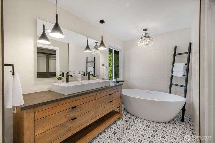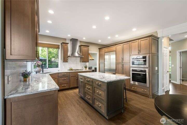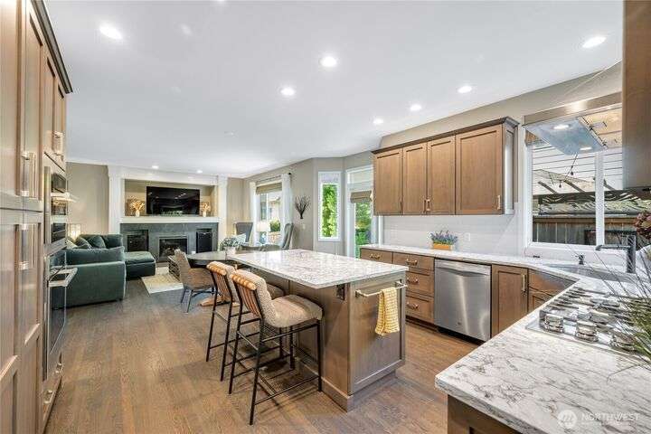 Beautifully maintained NE facing home in a quiet Sammamish neighborhood, within walking distance to highly rated Lake Washington schools. This home features 4 bedrooms & a den that can easily be used as an additional bedroom. Enjoy vaulted 9’ ceilings, hardwood flooring, gourmet island kitchen with high-end stainless steel appliances, beautifully remodeled bathrooms and a finished 3-car garage. Step outside to a fully entertaining backyard oasis, featuring multiple entertaining spaces including a hot tub, bar, water feature, flower gardens, built-in grill, refrigerator, TV, & string lighting. Perfectly located for a quick commute to Microsoft, Amazon and other top employers with easy access to Bellevue, Redmond and Seattle via i90 and 520.