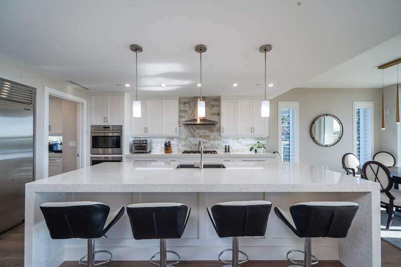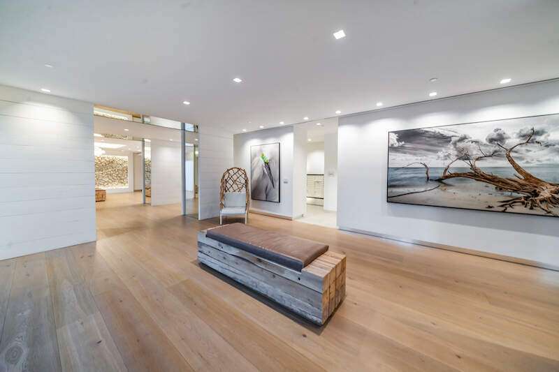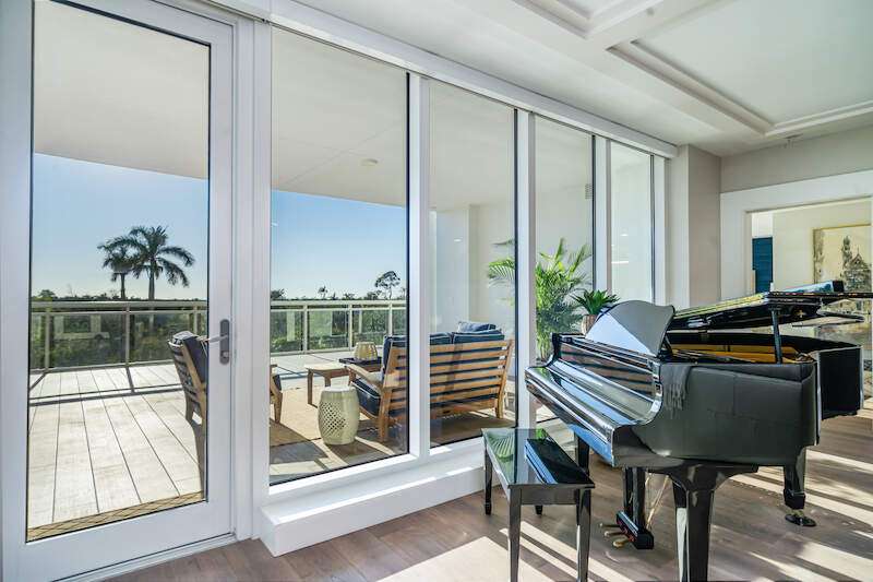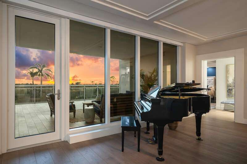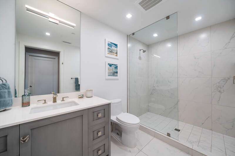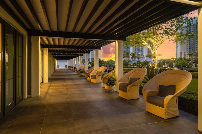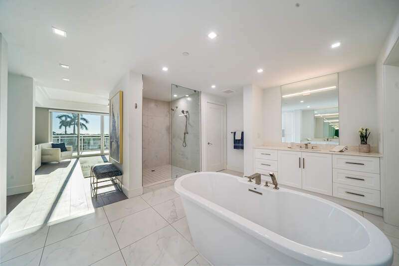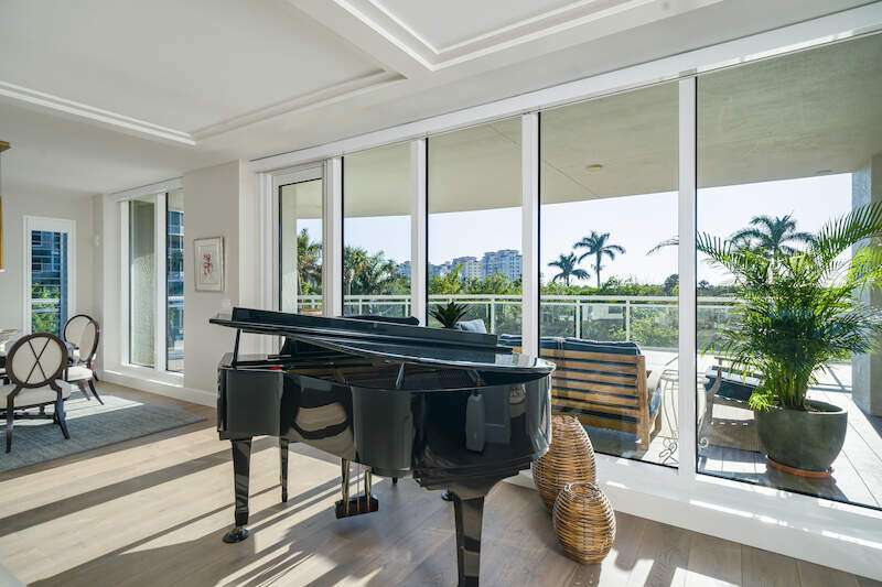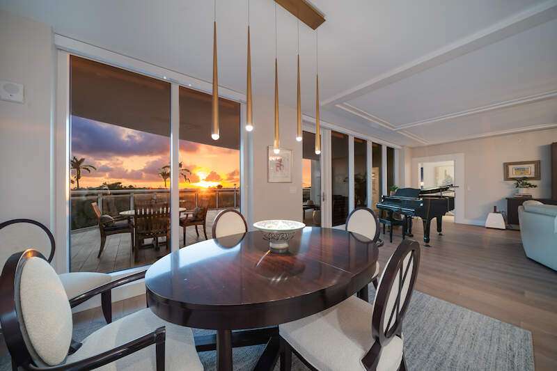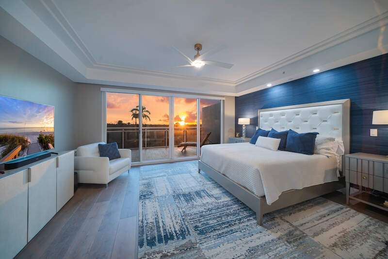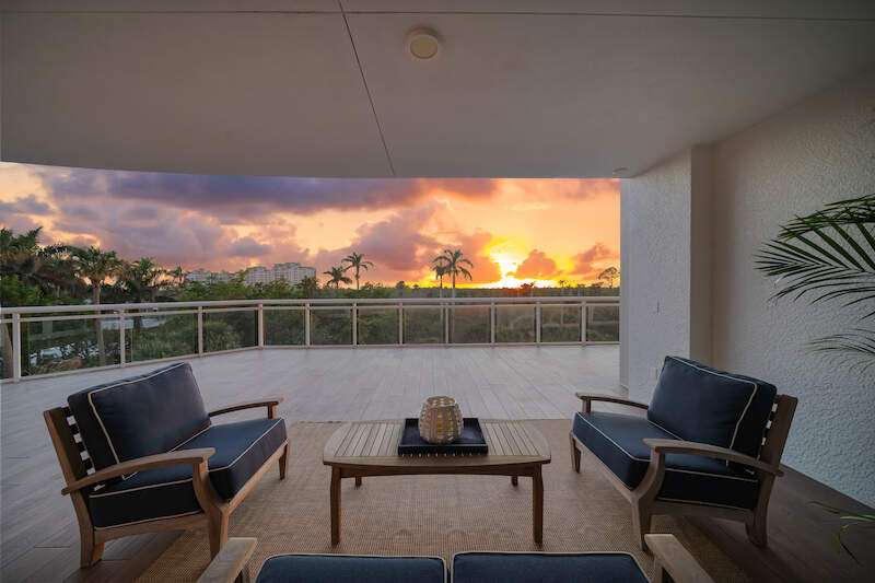 Fabulous lower-floor condo in Building One on the desirable southwest side, featuring the coveted "01" stack with an expansive wraparound balcony offering much more outdoor space than other units. Tiled plank "wood-look" flooring complements warm-toned hardwood floors throughout, creating a seamless indoor-outdoor flow. The open great room floor plan includes a custom built-in media wall with a linear gas fireplace, designer ceiling details, and a striking quartz chandelier. The gourmet kitchen boasts white cabinetry, waterfall quartz island countertops, a tiled backsplash, and top-tier appliances, plus a walk-in pantry with a beverage area and ample storage. The owner's suite opens to the lanai and features a luxurious bath with a walk-in shower, floating tub, dual vanities, and a built-out closet. Three additional en-suite guest rooms offer plantation shutters and large closets. A spacious laundry room and separate service entrance add convenience. Kalea Bay residents enjoy world-class amenities at the exclusive club, with over 100,000 square feet of luxury amenities. Includes: pools, expanded and remodeled fitness area, casual and formal dining, a beach park, fire pits, a dog park, tennis, pickleball, and short-term guest villas. Live the lifestyle of your dreams at Kalea Bay! Just minutes to sandy beaches, Mercato, fine dining and shopping.