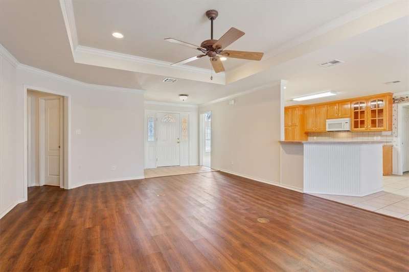Well maintained 3BR/2BA home in Robinson ISD! This property features laminate flooring throughout the living area and a beautiful stone wood-burning fireplace, creating an inviting atmosphere. The spacious kitchen is equipped with a freestanding range, built-in microwave, built-in dishwasher, island, and a large breakfast area. A formal dining room is conveniently located off the kitchen. The isolated primary suite features laminate wood floors, while the primary bath offers a separate shower, garden tub, and dual closets. The two guest bedrooms feature tray ceilings and generous closet space. A laundry room with freezer space adds extra convenience. Step outside to enjoy a privacy-fenced backyard with a covered patio and extended deck, perfect for outdoor entertaining. Additional features include a two-car side-entry garage, gutters, and a sprinkler system. Don’t miss out on this home! $389,000