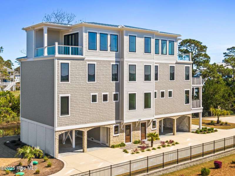 This stunning luxury duplex in Wilmington, North Carolina, offers unobstructed, panoramic views of the Cape Fear River, where breathtaking sunsets paint the sky every evening--an ideal backdrop for this exceptional property. Whether sold together or separately, each unit features spacious, open concept living areas with modern finishes, high ceilings, and expansive windows that perfectly frame the awe-inspiring river views. The chef-inspired kitchens boast sleek quartz countertops, stainless steel appliances, and solid wood cabinetry with soft-close drawers, creating a perfect space for cooking and entertaining. The bathrooms are fully tiled with walk-in showers, offering a spa-like experience with every use. Additional highlights include energy-efficient whole-house foam insulation, ensuring year-round comfort, and durable, beautiful flooring throughout. Outside, the shared fenced grass area provides an ideal space for relaxation or outdoor activities, while two carports per unit offer ample parking. An outdoor shower completes the coastal lifestyle. With its flexible layout, this property presents an ideal Airbnb investment, offering substantial short-term rental income potential, or the perfect setup for house hacking, where you can live in one unit and rent out the other to offset costs. Located just minutes from dining, shopping, and local attractions, this riverfront gem combines the best of luxury living, investment potential, and coastal charm--making it an opportunity you won't want to miss.