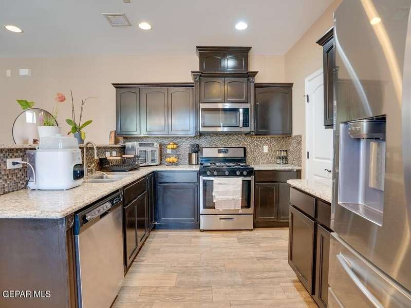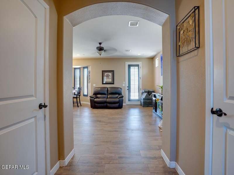 Welcome to this beautifully maintained two-story home in the Paseos at Mission Ridge community. Built in 2015, this 3-bedroom, 2.5-bathroom home offers a balance of modern design and comfortable living. This home has been lovingly cared for by its original owners. An open-concept living area and kitchen with granite countertops, stainless steel appliances, and a generous walk-in pantry provides excellent kitchen storage. Ceramic tile flooring throughout all main living areas and bathrooms for easy maintenance. Upstairs, you'll find a dedicated laundry room, along with all three bedrooms designed to offer space and functionality. Shutters throughout the home add both privacy and style. The extended concrete patio in the backyard offers a great space for outdoor entertaining, while the unfinished yard is ready for your personal touch-whether it's a garden, turf, or custom landscaping. Located minutes from Eastlake Blvd, you have quick access to shopping, dining, and I-10. This home is a move in ready gem!