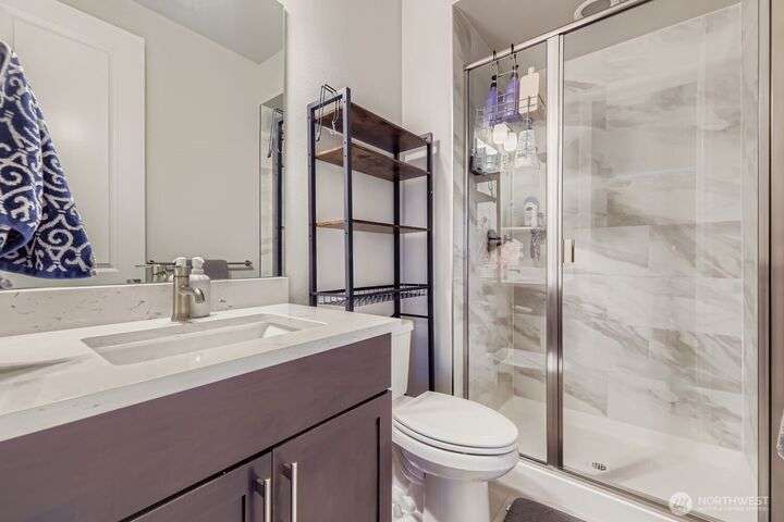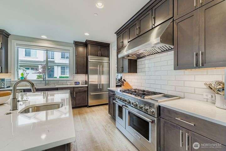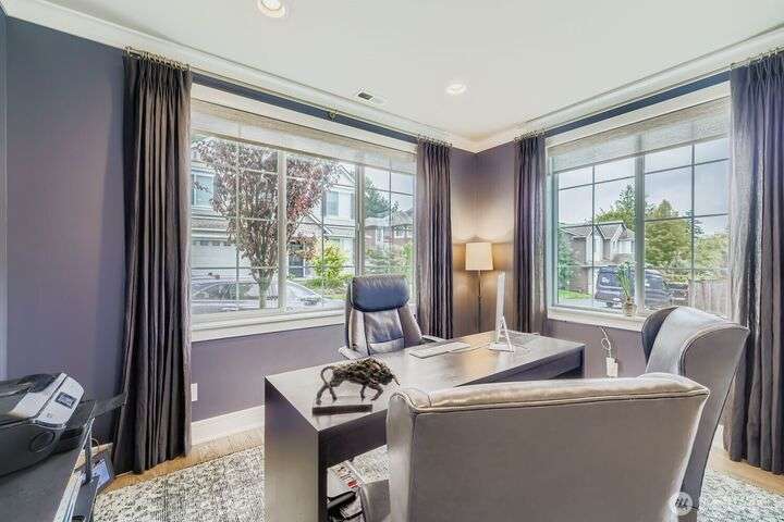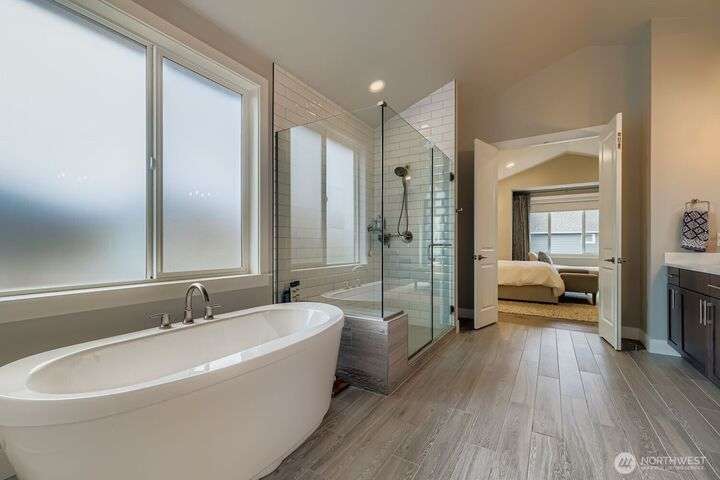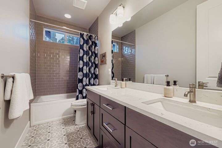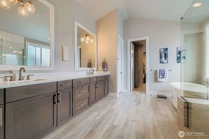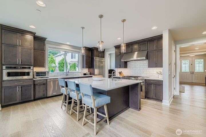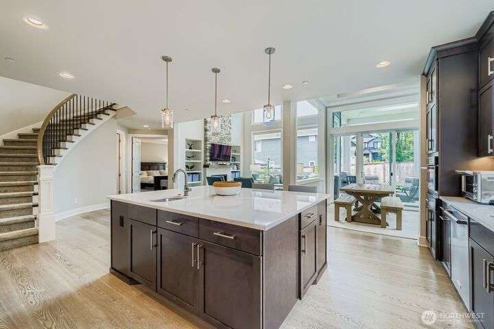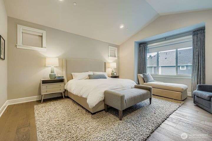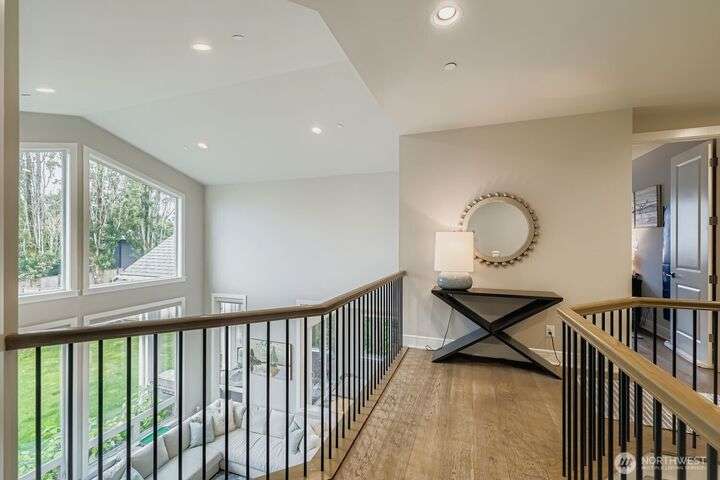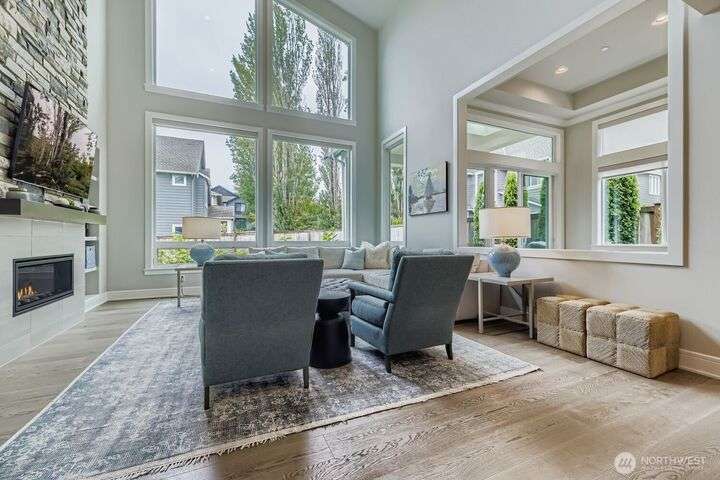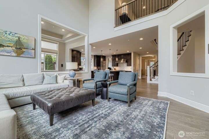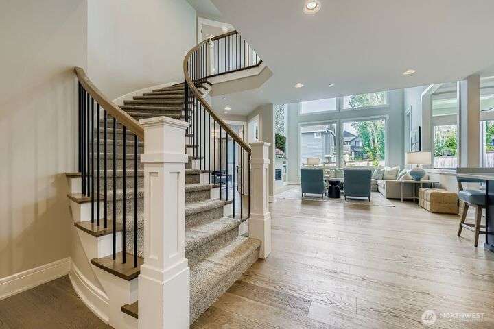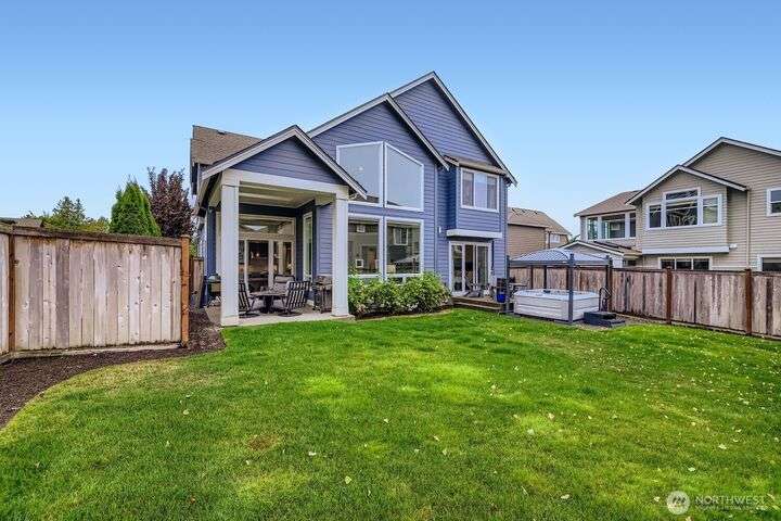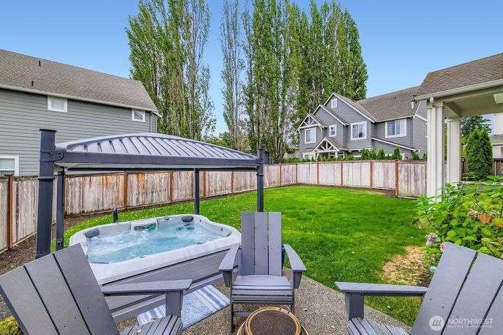 Murray Franklyn home in the quiet 21-house enclave of Hazelwood. With easy access to I405, this impeccably cared for home sits prominently, graced with mature landscaping and wrapped with a beautiful small lawn. The formal entry greets, guiding you to the soaring, bright living room and large kitchen space. Guests will be thrilled with the over-sized, main floor bedroom complete with ensuite bathroom and slider to a backyard patio. The yard is fully fenced for peace of mind privacy & security. Hot tub with telescoping roof for year-round enjoyment & relaxation. Epoxy garage floor & EV charger. Room for a gym. Community park with play structure. Pride of ownership shines. Close DT Bellevue, Seattle, SeaTac, Hazelwood Ele & Risdon Middle.