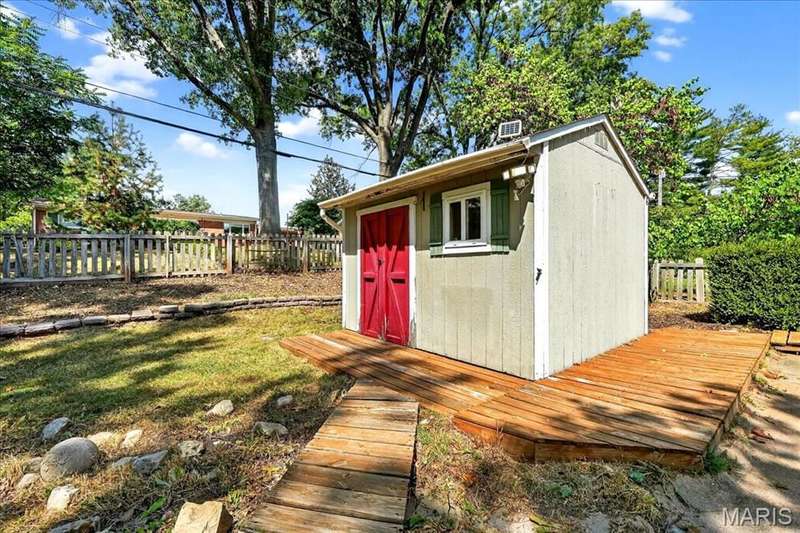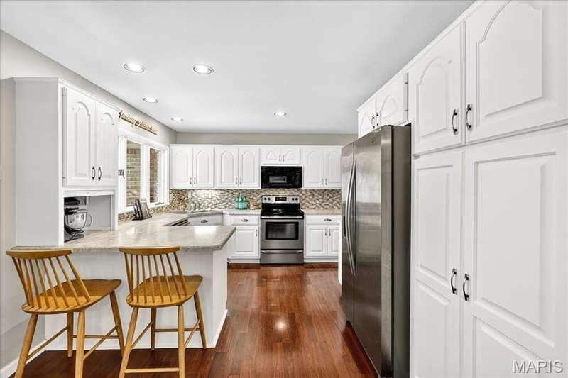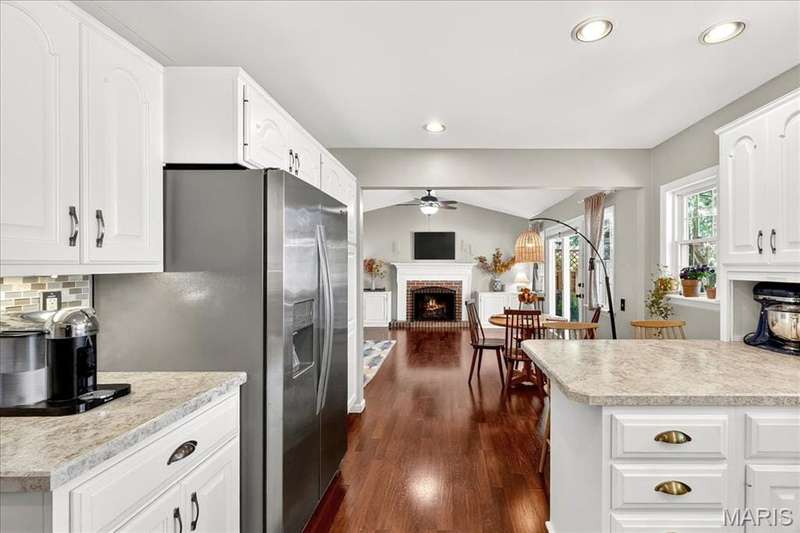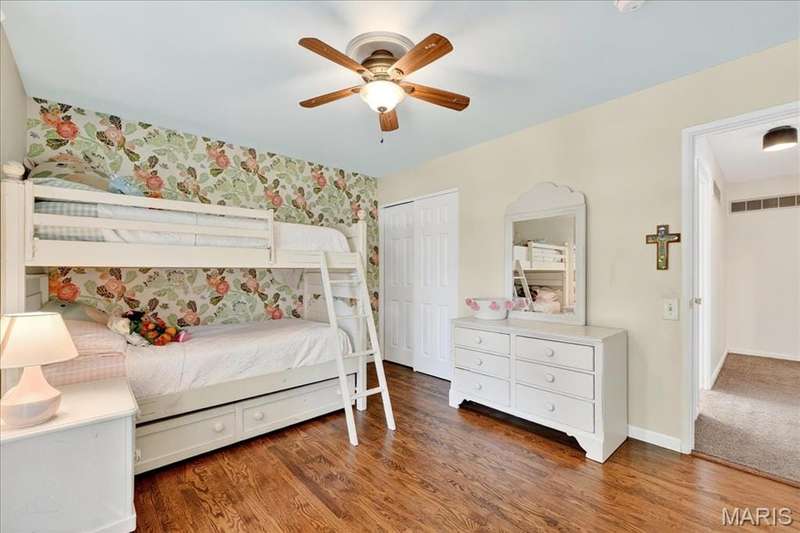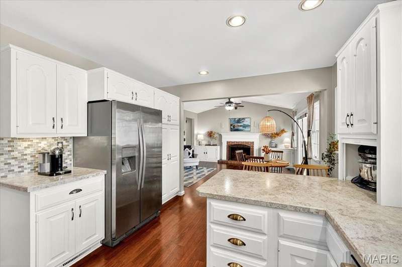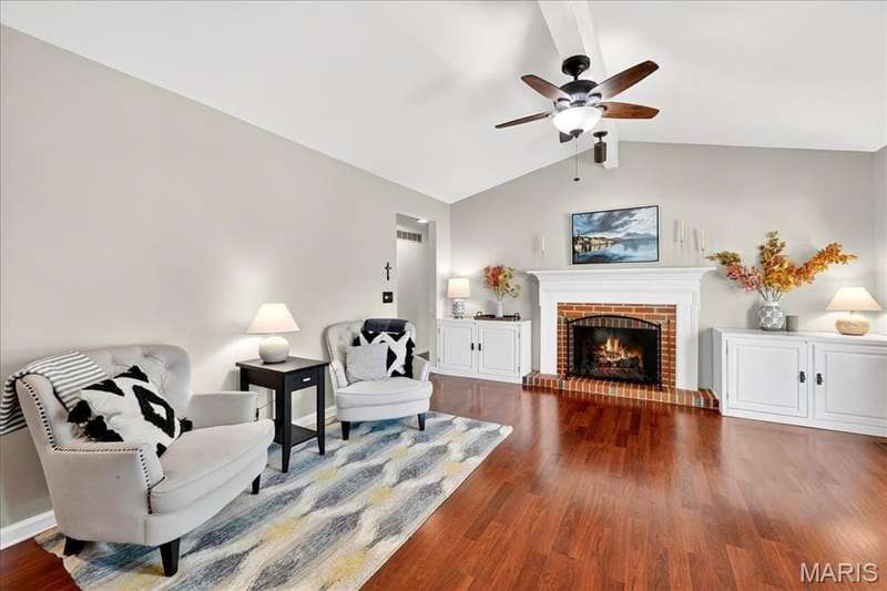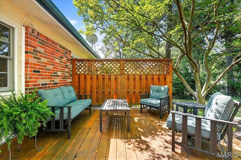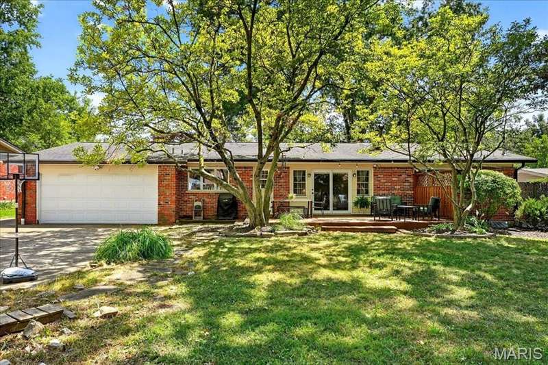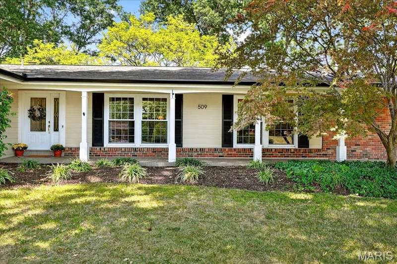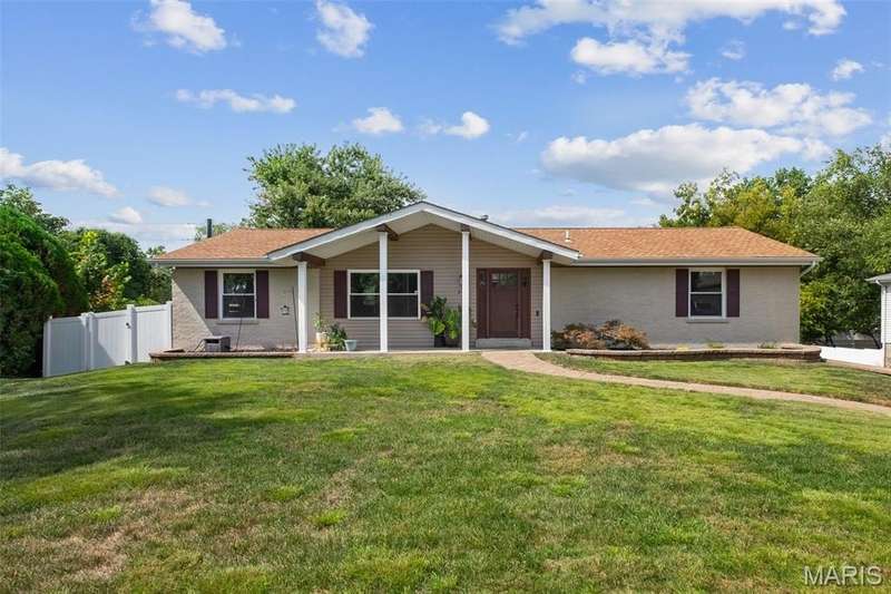 Welcome to 509 Antioch Lane, a cozy 4 bed, 3 bath, 3256 sq. ft ranch on a quiet cul-de-sac in Ballwin's sought-after Claymont subdivision. A generous front yard shaded by mature oak trees leads you inside, where hardwood floors flow through the bedrooms and main living areas. The vaulted family room with gas fireplace creates a warm gathering space, while the kitchen offers counter seating and freshly painted cabinets. The large finished lower level extends living space with a full bath, renovated office or craft room and optional 5th bedroom complete with egress window. Step outside onto a wood deck overlooking the fenced and level backyard perfect for entertaining. Recent updates include new HVAC (2023), dishwasher (2020) and gutters (2025). Enjoy the convenience of walking to Claymont Elementary or the outdoor Ballwin pool and pickleball courts. Hurry-this one won't last long! Kitchen and Basement Refrigerators included. Open House Saturday 9/6 noon till 2pm. Sunday 9/7 1-3 pm
