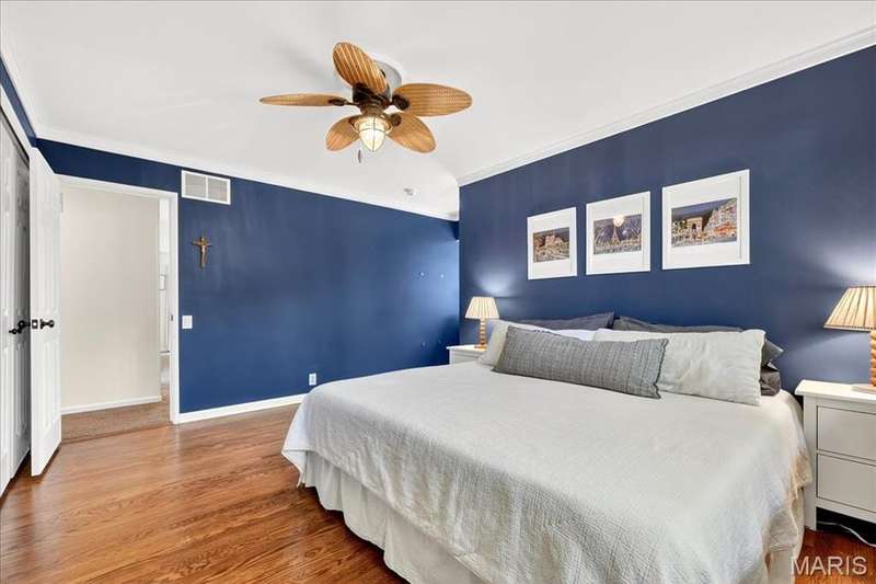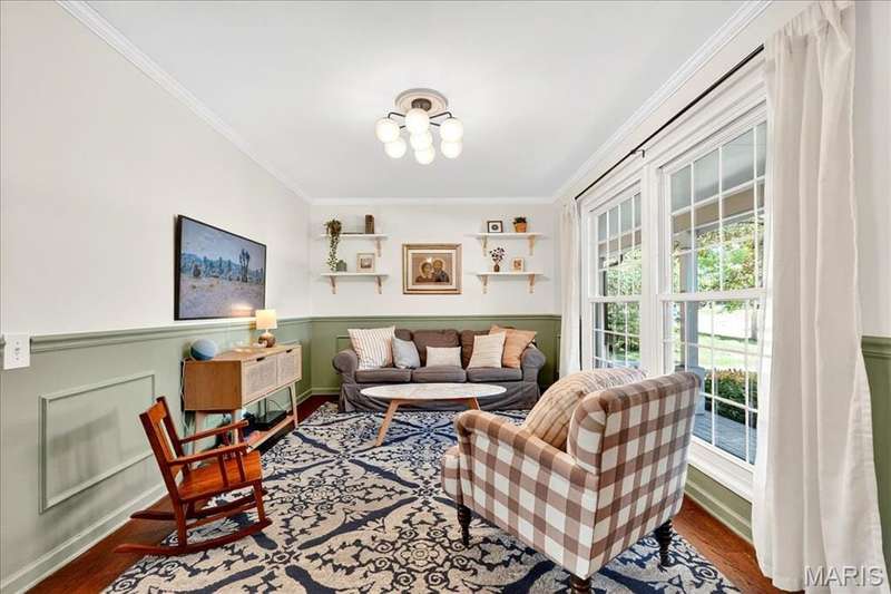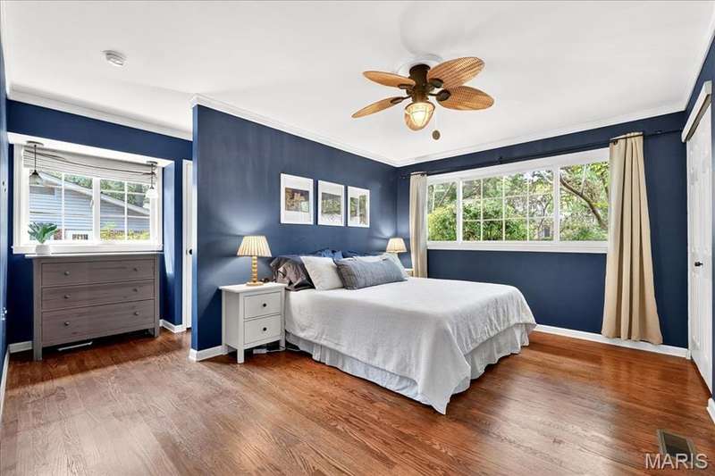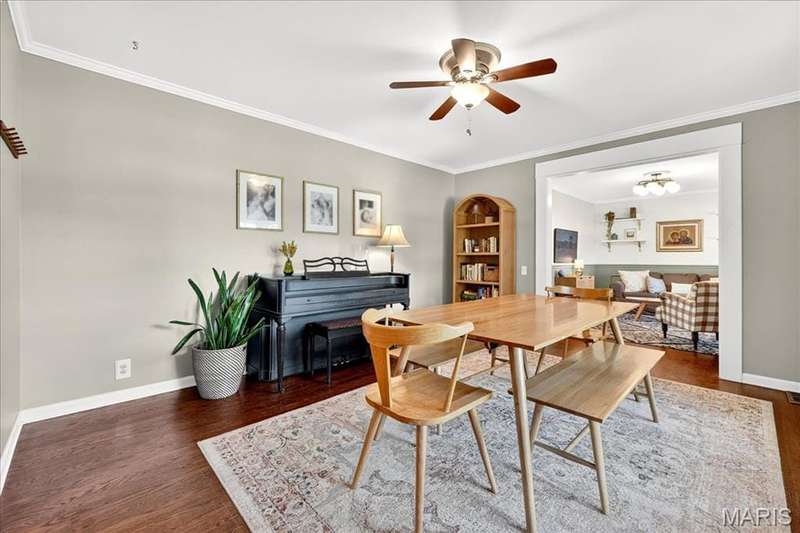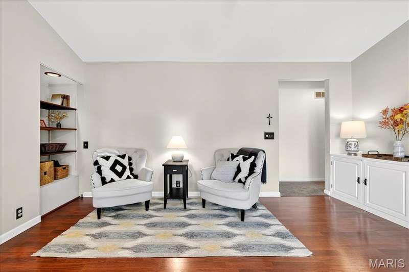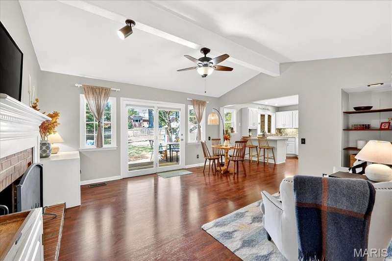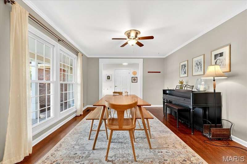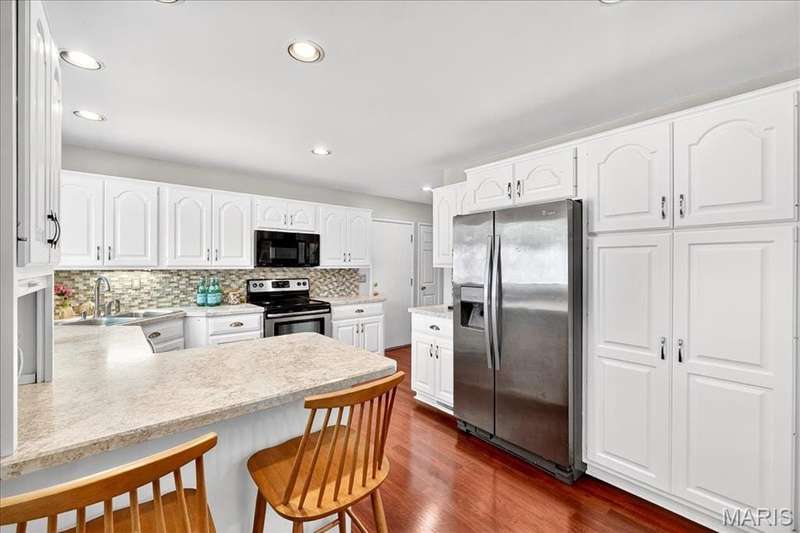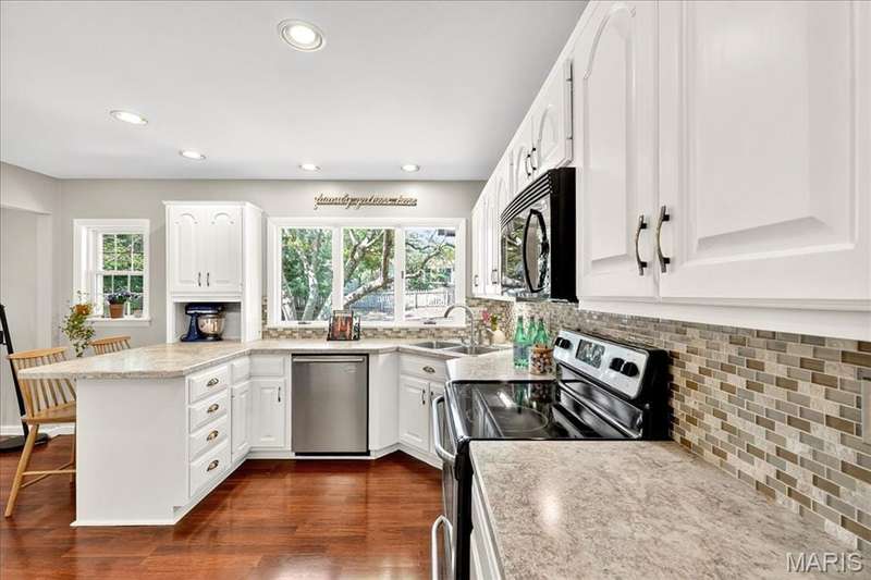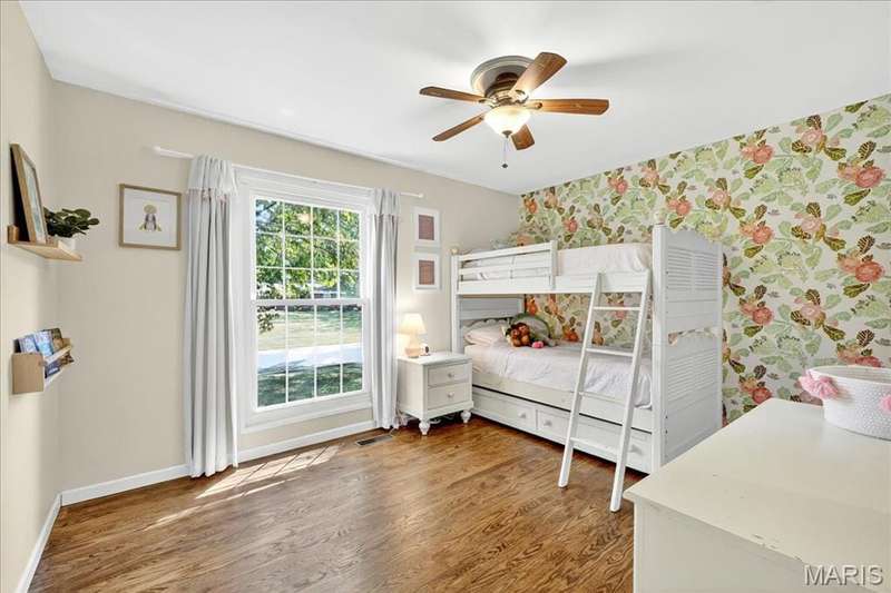 Welcome to 509 Antioch Lane, a cozy 4 bed, 3 bath, 3256 sq. ft ranch on a quiet cul-de-sac in Ballwin's sought-after Claymont subdivision. A generous front yard shaded by mature oak trees leads you inside, where hardwood floors flow through the bedrooms and main living areas. The vaulted family room with gas fireplace creates a warm gathering space, while the kitchen offers counter seating and freshly painted cabinets. The large finished lower level extends living space with a full bath, renovated office or craft room and optional 5th bedroom complete with egress window. Step outside onto a wood deck overlooking the fenced and level backyard perfect for entertaining. Recent updates include new HVAC (2023), dishwasher (2020) and gutters (2025). Enjoy the convenience of walking to Claymont Elementary or the outdoor Ballwin pool and pickleball courts. Hurry-this one won't last long! Kitchen and Basement Refrigerators included. Open House Saturday 9/6 noon till 2pm. Sunday 9/7 1-3 pm